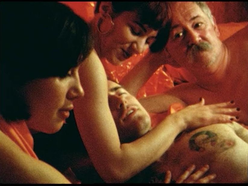 Lia Gangitano, the director of Participant Inc (who now handle Cantor’s estate) plays Pinochet’s—fictional—twin daughters, while the dictator himself is played by the Wooster Group actor Jim Fletcher. Early in the film a lushly orgiastic episode features the cult London night-lifers Princess Julia and James Jeanette; the (genuinely pregnant) artist Margarita Gluzberg as The Pregnant Virgin; and a naked Cerith Wyn Evans jovially embraces the role of Osha the Sex Guru.