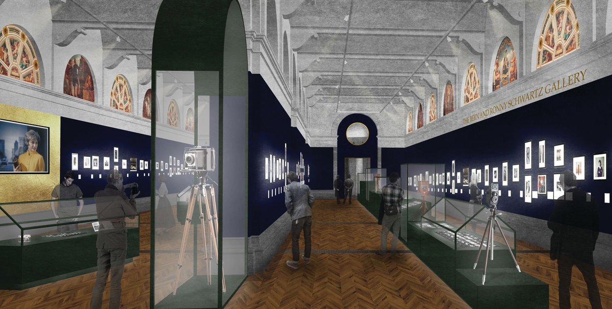 The image shows one of the largest galleries, to be named the Bern and Ronny Schwartz Gallery in recognition of a major donation by the California-based Bern Schwartz Family Foundation. The foundation, which sponsored the museum’s Julia Margaret Cameron exhibition in 2015, is dedicated to the appreciation of photography as an art form. The US businessman Bernard “Bern” Schwartz became a successful portrait photographer in the 1970s, late in life, with sitters including Prince Charles and Henry Moore. The foundation recently gave Schwartz’s 1978 portrait of the former V&A director, Roy Strong, to the museum.