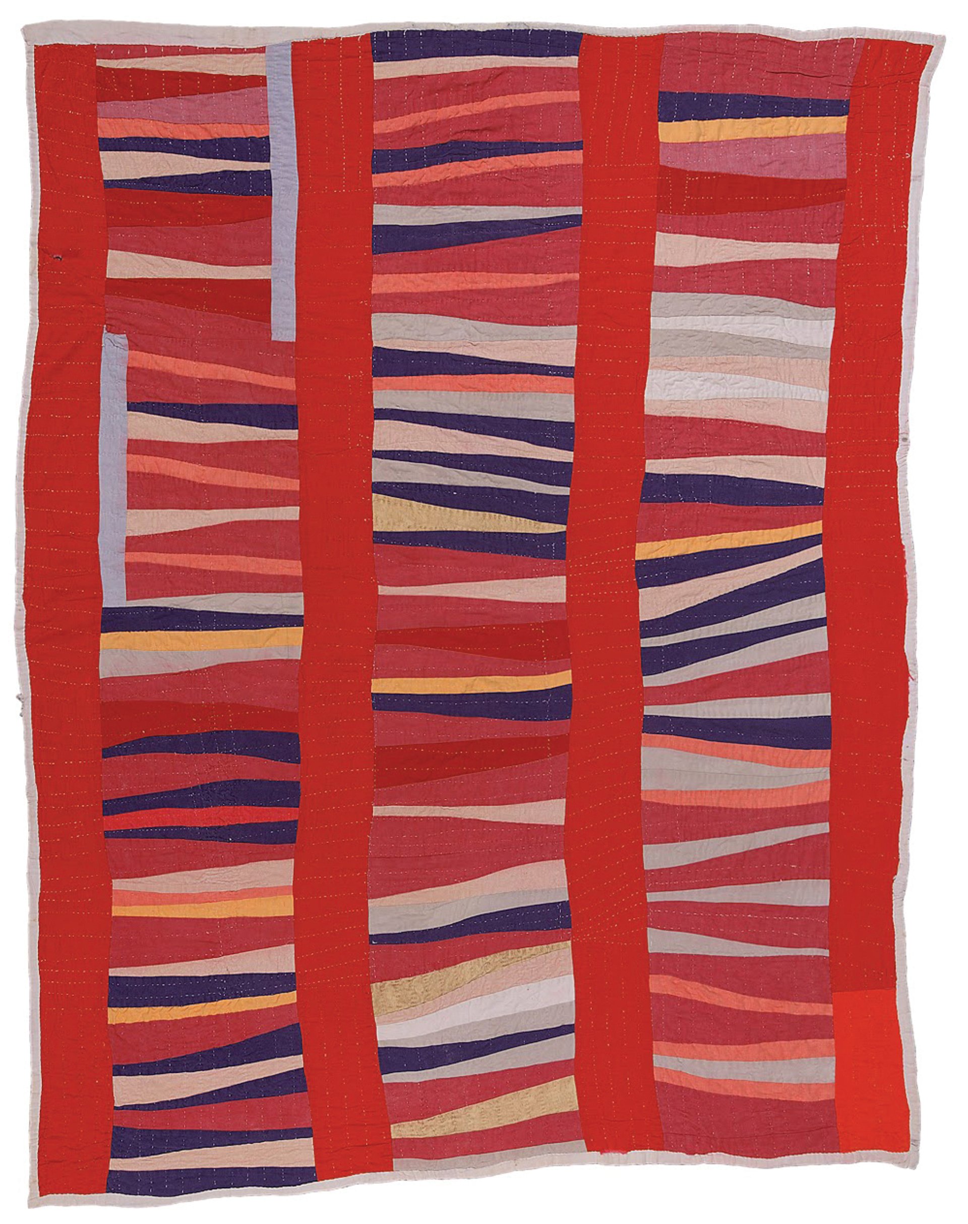 Burgard calls this “one of the most beautiful quilts ever made in America”. Made from recycled clothing, it featured on a stamp in the US Postal Service’s 2006 series Quilts of Gee’s Bend. Shirtsleeves form the multicoloured vertical columns, which evoke the strip-weave textile technique from West Africa.