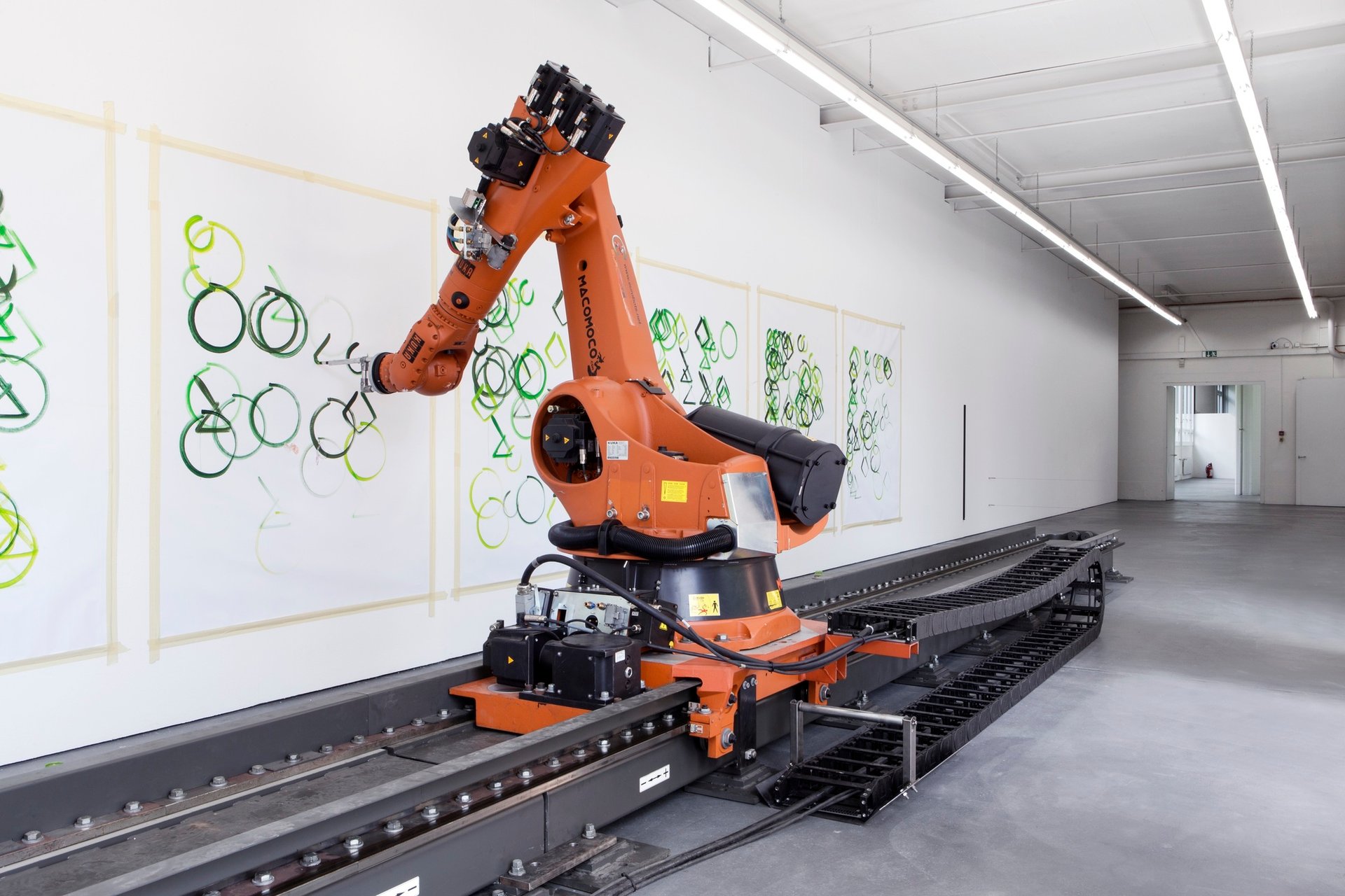 Watching paint dry The giant robot installed by the maverick conceptual artist Piero Golia at the Kunsthaus Baselland may be wowing the Art Basel crowds with its painting skills, but it is seemingly achieving only a fraction of its potential. Sourced from Rome’s Cinecittà film studios and weighing several tonnes, the mighty one-armed automaton is capable of moving at a rate of seven metres a second. Yet it has been sedately dabbing at the same six abstract canvases for well over a month. “If I wanted, I could set it to work a lot faster and make a lot more money,” admits Golia, “but that’s the difference between performance and painting”. The artist’s three galleries—Gagosian, Bortolami and Almine Rech—are no doubt itching to crank up its settings.
