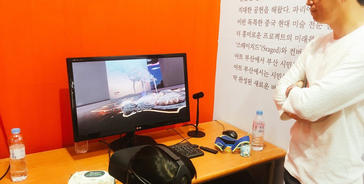 Chinese art came to Korea earlier this month—virtually. Art Busan, a fair which ran 1 to 5 June in the South Korean port city, invited the DSL Collection Virtual Reality Museum to participate. The digital platform features 30 of the 350 works in Dominique and Silvain Levy's collection of Chinese contemporary art, and was designed by Jean Bernard Grasset at Monochrom Virtual Arts Factory. Seven works were displayed in the booth. The project curator Joanne Kim says meanwhile that the VR was particularly popular with children, able to interact with art without the usual hands-off admonitions. "Many parents were surprised that their kids stayed [so] long to get to know art,” she says. “We had to limit [usage] to 20 mins due to the long line and complaints.” Particular favourites among the young users were Miao Xiaochun's video Microcosm for its giraffe and Jin Jiangbo’s installation Chinese Tyrannosaurus.