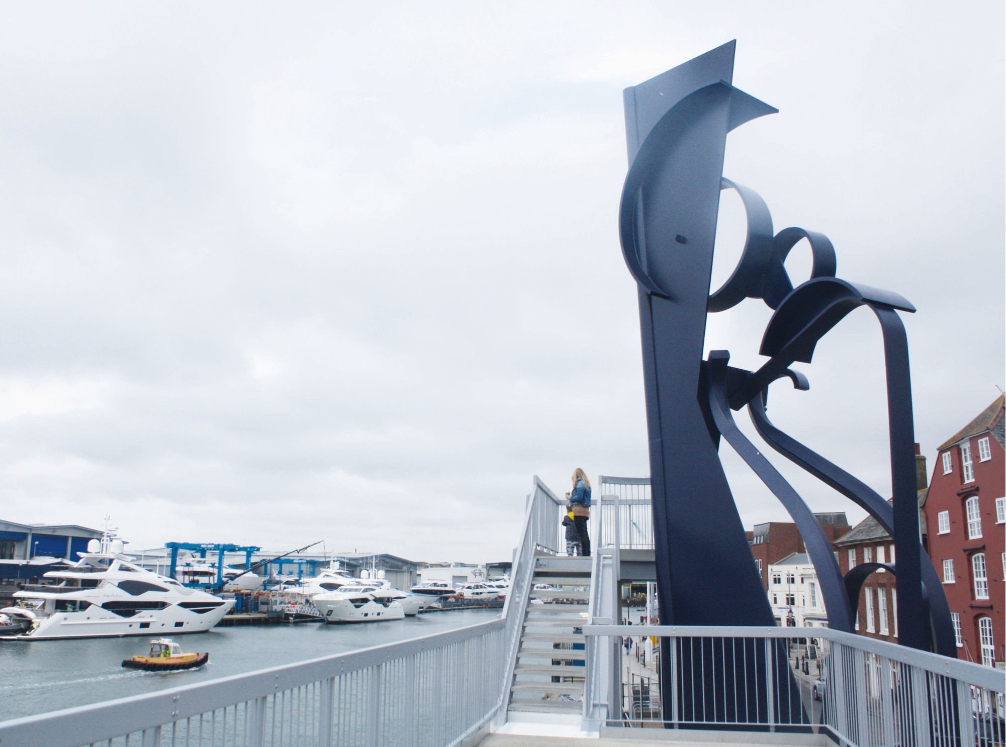 Commissioned by the Poole Arts Council, Sea Music—ones of Caro’s “sculpitecture” pieces—was inspired by a 19th-century photograph of the ships sailing into the harbour. “It was Caro’s gift to the city of Poole,” says the project’s manager Melinda McCheyne. “It was a way to promote arts in the town and show what a good piece of public art could add to it.”