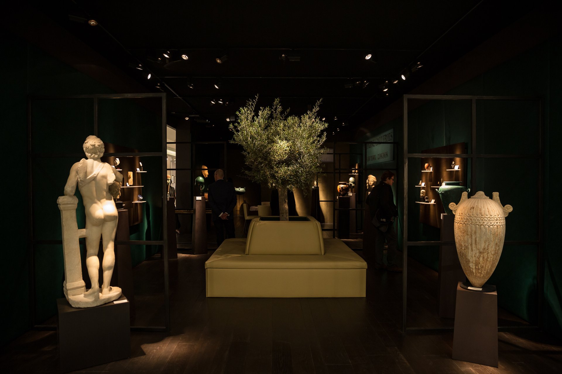 Ancient art is given the domestic touch at Ariadne Galleries, whose mood-lit booth features upholstered benches and an olive tree. “It’s a real home environment, to a certain degree,” says Gregory Demirjian, the co-president of the gallery. Early sales here include a Corinthian helmet from the sixth century, which sold for a mid-six-figure sum.