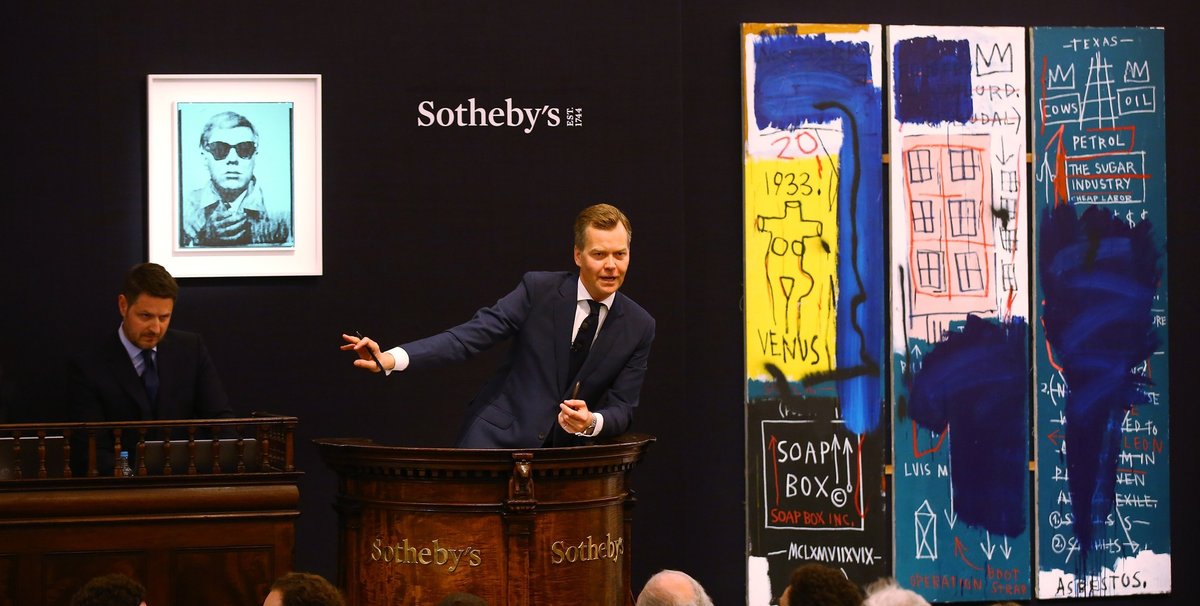 The sale was not without its market darlings, however. The two most expensive artists at auction, Jean-Michel Basquiat and Andy Warhol, were among the US artists to lead the charge. The top lot was a 1983 triptych by Basquiat that sold for £5.6m (£6.5m with fees; est £4m-£6m). It went to Sotheby’s chief operating officer Adam Chinn on the phone after lengthy bidding from the dealer Christophe van de Weghe and the Paris collector John Sayegh Belchatowski.