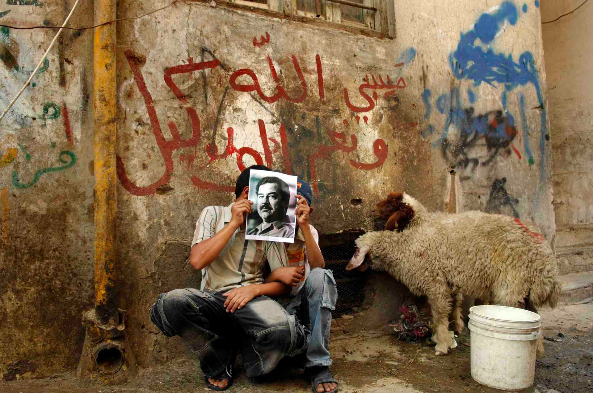 Iraqi citizens hold photographs of Saddam Hussein over their faces in the series Saddam is Here (2010) by Jamal Penjwany, reminding viewers that the late dictator was still omnipresent years after his death. Works by two Iranian artists, Hengameh Golestan and Newsha Tavakolian, have also been acquired.