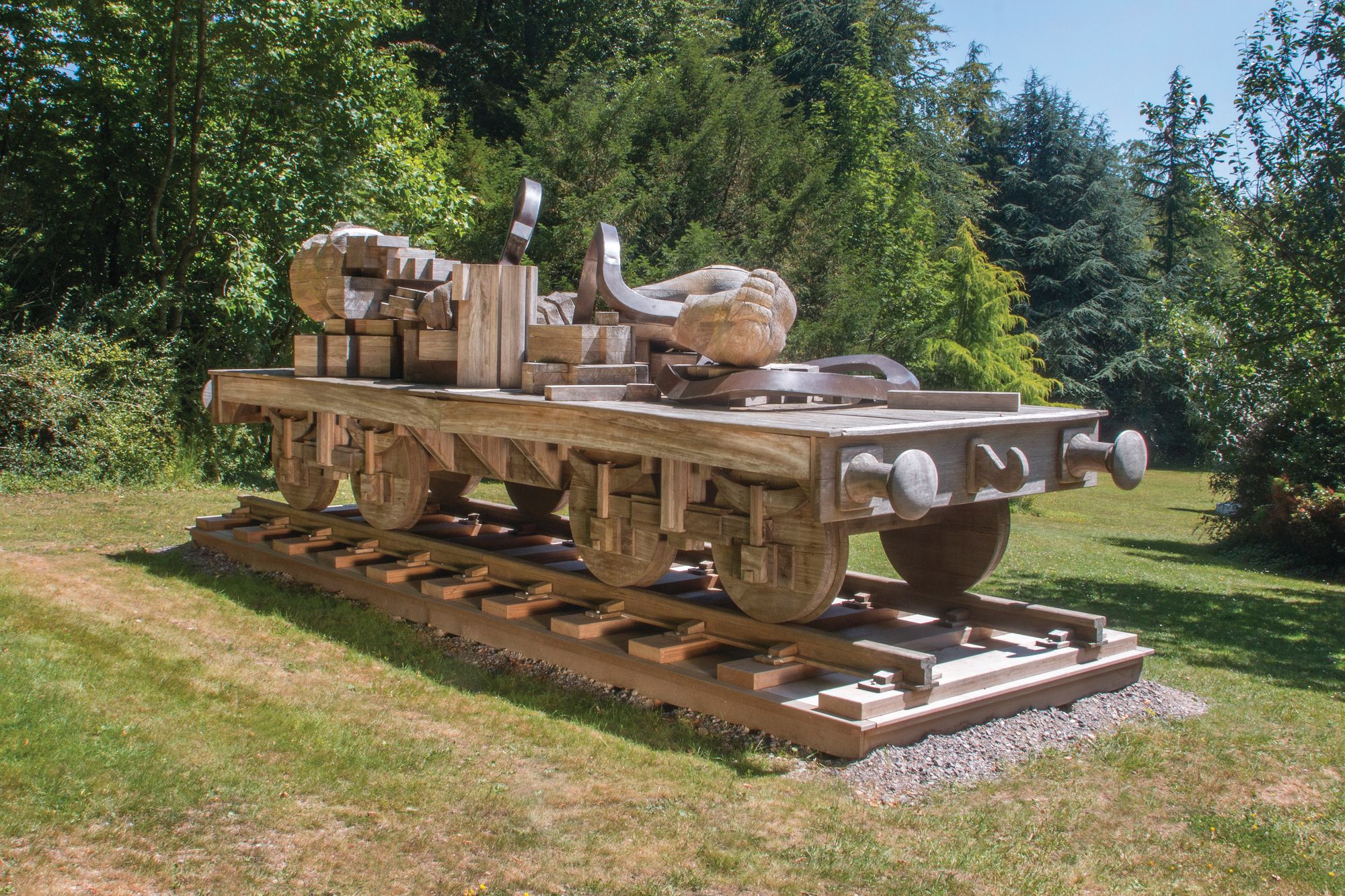 This sculpture “is one of the last outdoor works that Eduardo Paolozzi created and a rare example of the artist working in wood,” says Helen Turner, the curator at Cass Sculpture Foundation in Sussex. Paolozzi was nervous about creating an outdoor work in wood as “it requires a lot more conservation”, she says. But organisers reassured him that Cass would work to constantly restore the work. The flat wagon carrying abstract shapes and body parts was inspired by—and named after—the connecting points on journeys the artist made as a child from Scotland to Italy, Turner says.