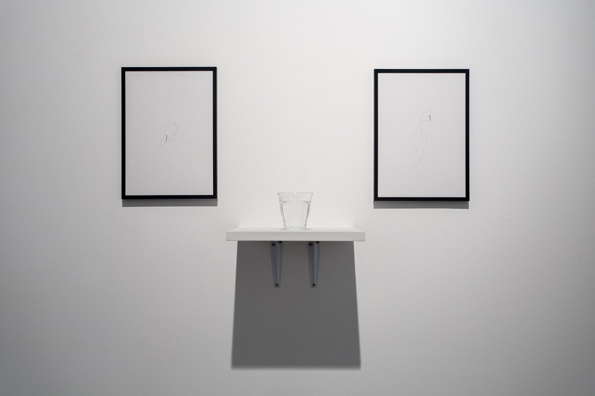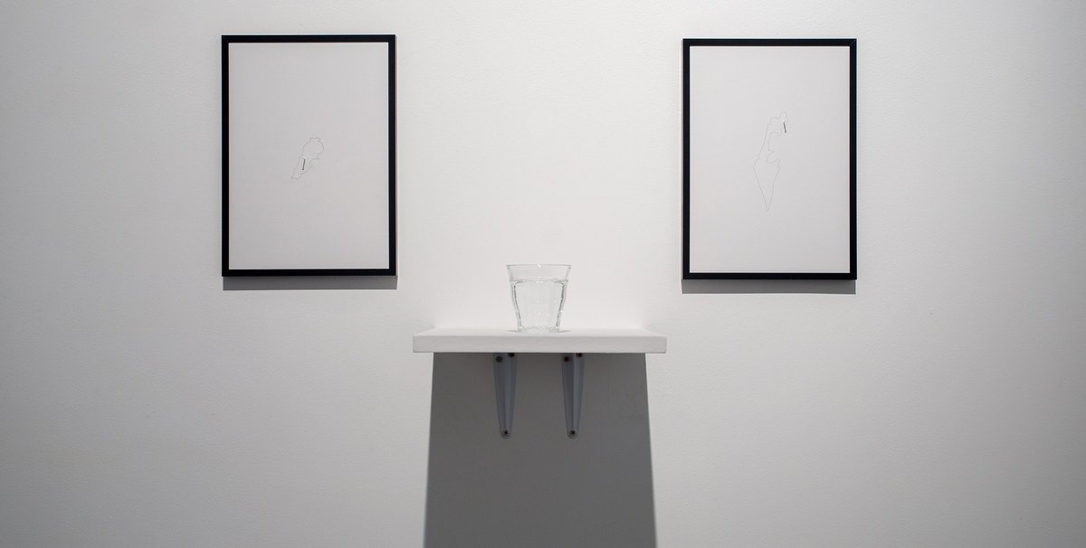 Another notable installation is Mixed Water, Lebanon, Israel (2013) by the conceptual Beirut and Paris-based artist Charbel-joseph Boutros, which includes drawn maps of Lebanon and Palestine with a glass of water in between that contains mineral water from both locations. Over the duration of the show, the water will evaporate, “adding an almost mystical quality to the work, where political tensions and points of origin diffuse and dissolve through an inescapable natural process”, says Merzaban.