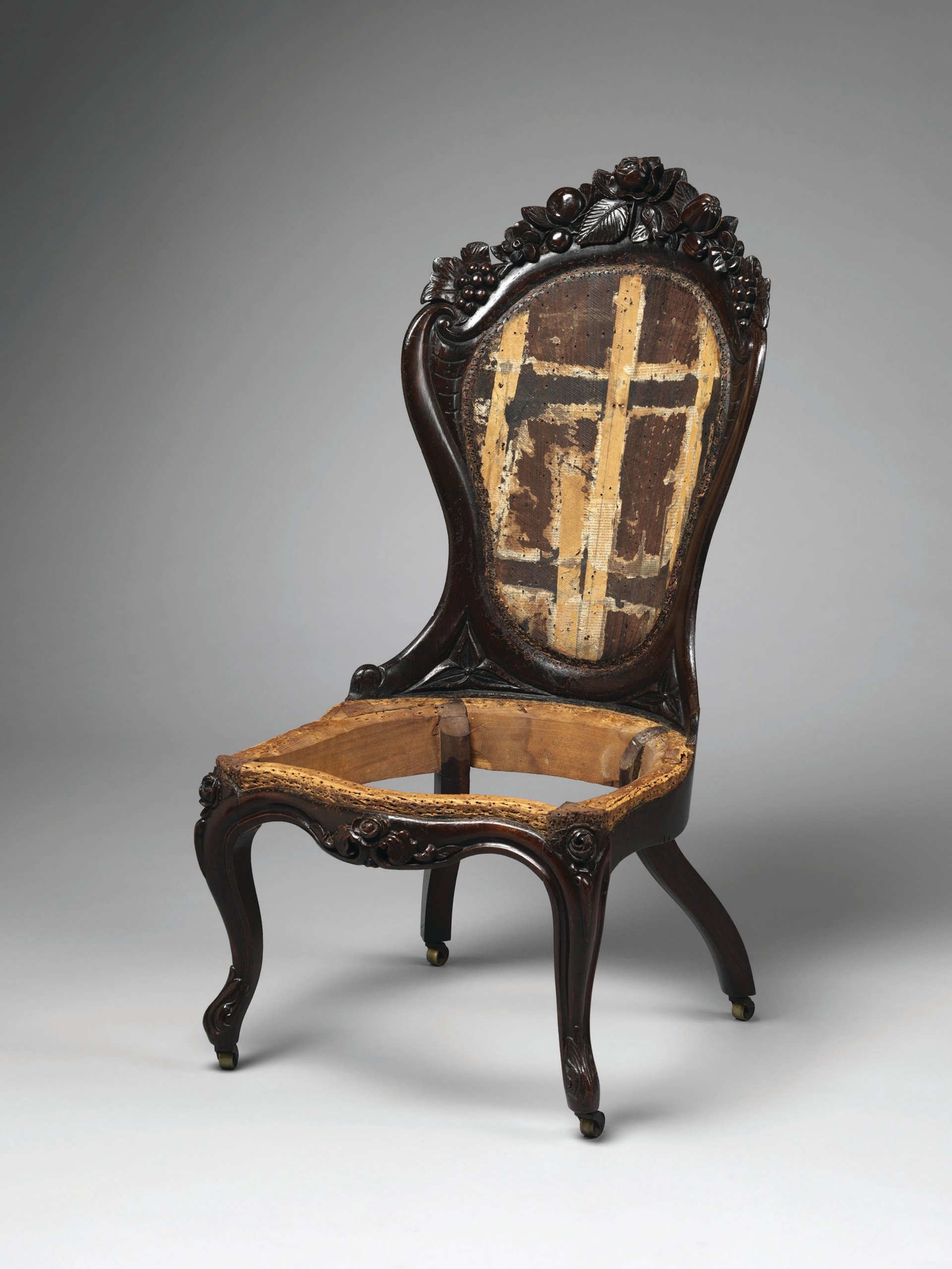 Conservators also treated a dished-back chair made in New York in the 19th century by Henry James Belter, who filed three patents related to “pressed work”, a technique that involves using moulded plywood in furniture-making. Belter developed a cheap and easy technique to mould eight chair backs at a time.