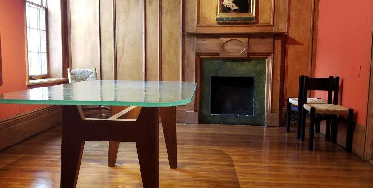 At the gallery, a gold ground Madonna and Child by Pellegrino di Mariano, from around 1460, is juxtaposed with a unique wild cherry table by Charlotte Perriand dating from the 1940s.
