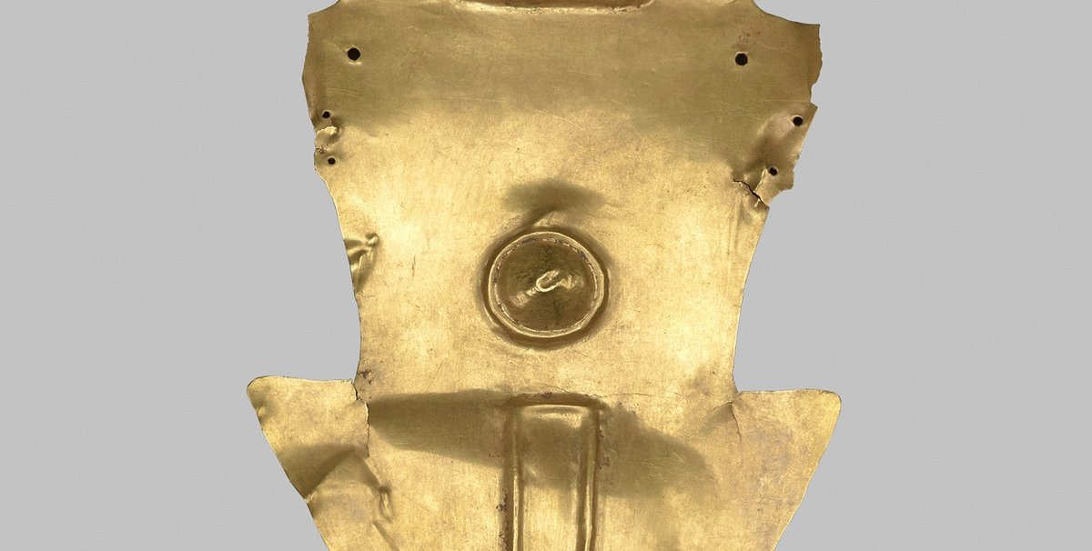 The latest research suggests the breastplate is considerably older and more important. The Royal Collection contacted Kate Jarvis, a British Museum curator of the Americas. She confirmed that it is tumbaga work, a term for an alloy of gold and copper that was used in Pre-Columbian central America.