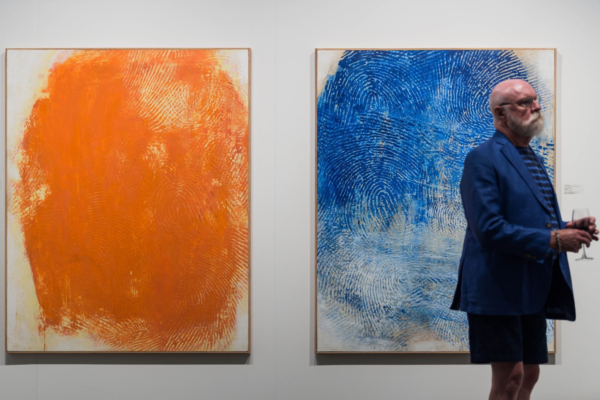 Laguna Beach-based Peter Blake, who specializes in California Light and Space artists such as Helen Pashigan and Mary Corse, both featured in his booth, was doing the fair for the first time. His impression was that “people here want to collect; they don’t want to feel like a second-class city.” He was impressed by the number of collectors who had traveled specifically for the fair: “Lately it’s these ‘outside’ markets—Dallas, Chicago, Seattle—that are the most surprising.”
