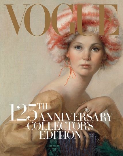 Plaudits have poured in for John Currin's painting of the screen icon Jennifer Lawrence which was commissioned by US Vogue for its prestigious September edition. The work, made for the 125th anniversary issue, shows the Silver Linings Playbook star in a Miu Miu patterned fur hat brandishing a green purse. "Ms. Lawrence is depicted in a Mannerist pose, unnatural but elegant. Perspective is minimised and a rococo palette competes with a hint of Dutch old master sobriety," according to the New York Times. But this is not the only arty Vogue cover depicting the quirky screen idol. Three other Vogue covers by Annie Leibovitz, Bruce Weber and the Dutch photography duo Inez and Vinoodh will depict Lawrence. Vogue has form in artistic covers; Pop art supremo Andy Warhol splashed Princess Caroline of Monaco on the cover of French Vogue in 1983.