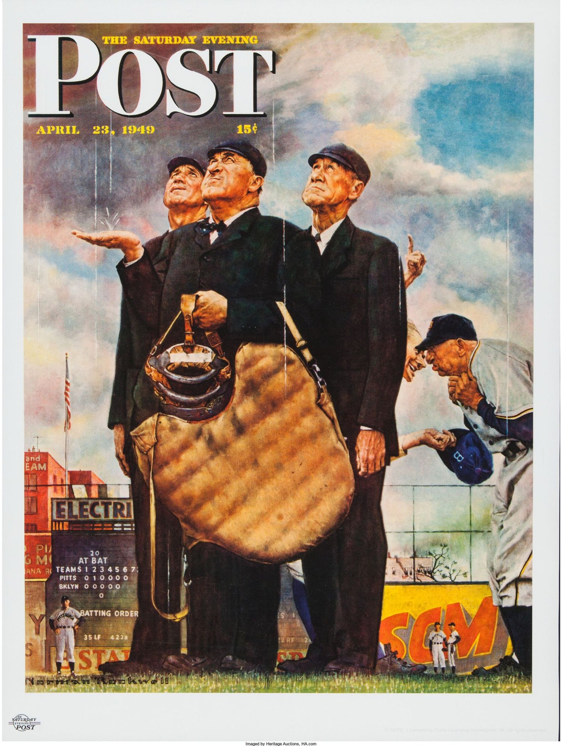 19-20 August: Platinum Night Sports Collectibles Study for Tough Call, Saturday Evening Post (1948) by Norman Rockwell