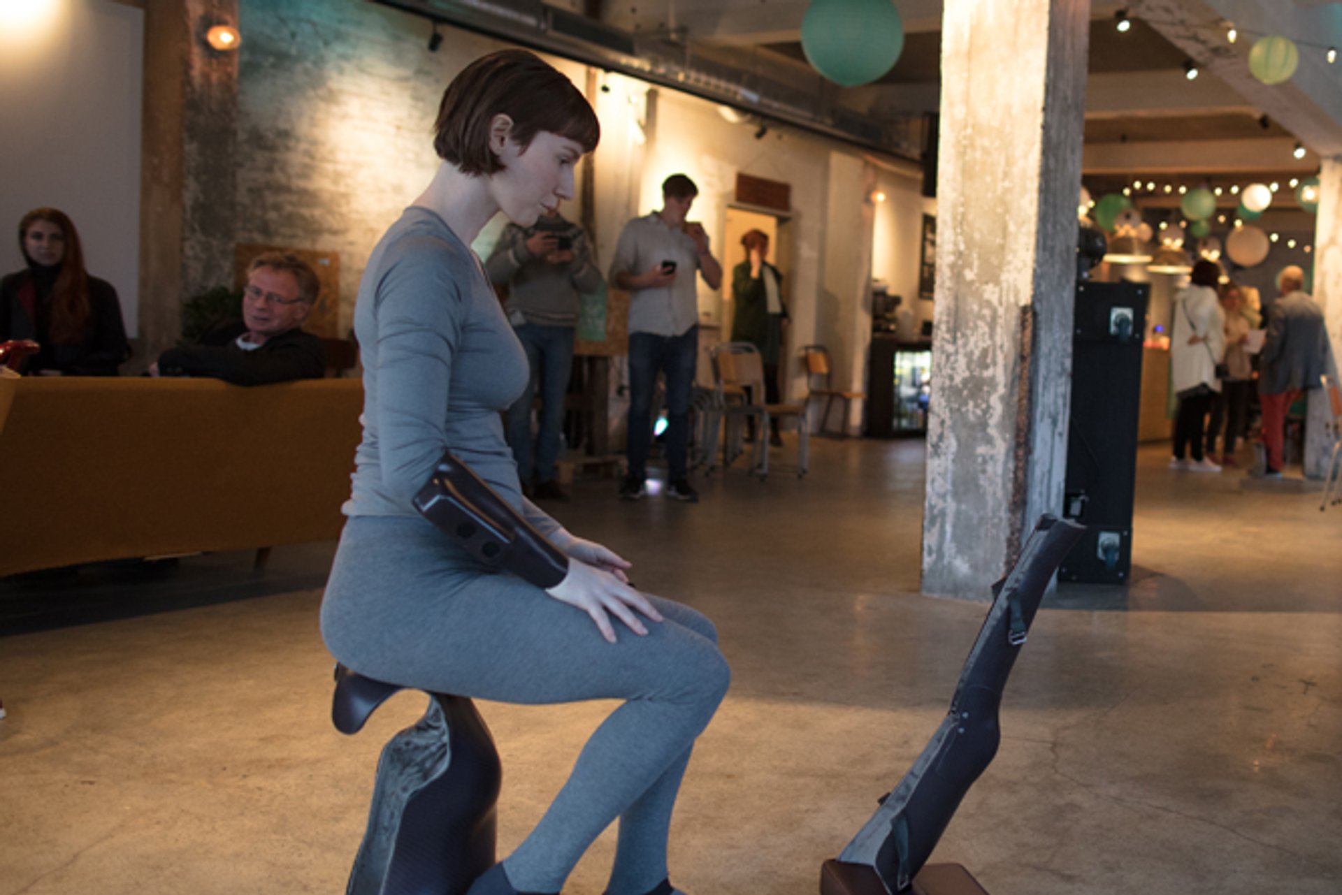 Adam Linder’s work To Gear A Joan, is "activated" by the Norwegian singer Stine Janvin Motland. Linder was the first artist that Hoegsberg and Ballet asked to take part in LIAF and the resulting commission marks a change in his practise as it involves both performance and sculpture. Janvin Motland puts on the “wearable libretto” while singing Linder’s words, creating a looped musical piece, which then plays as she walks around the gallery space. “…To a failed binary, grant us his atrophy, turned to blossomed parody...,” she sings. She will activate the work throughout the festival and in her absence it will remain as a sculpture, which can be activated by others, transforming from a chair and lectern to body armour and back again.