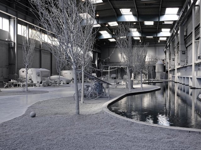 Doug Aitkens's work can often seem gimmicky or people-pleasing. But Sonic Fountain II, with its plumbing rig high-up above a milky blue pond, is a subtle and moving affair. The drips falling from the taps above follow a score that is amplified by microphones as they hit the water in the crater below and echo around the space, a former silo. In a press statement the artist says that the work “lays the architecture bare to reveal its rhythm, its tempo and its language”.