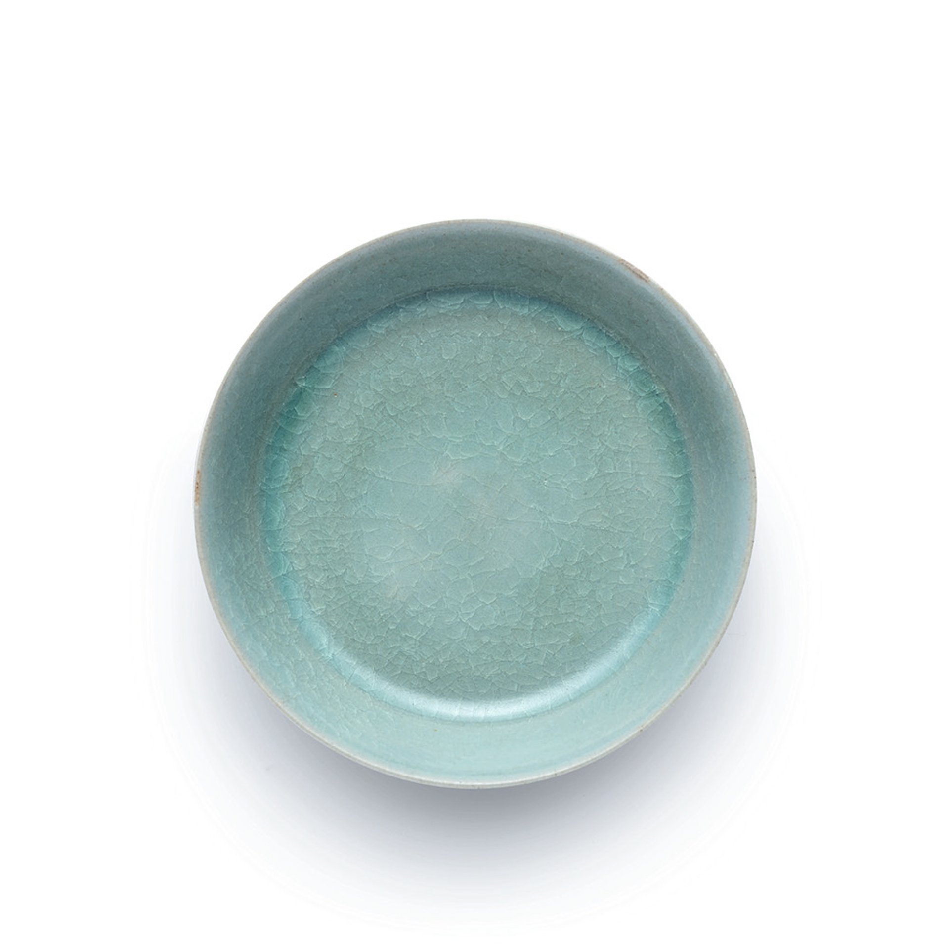 This blue-green Ru guanyao brush washer, a work that the house says has “quasi-mythical” rarity, was produced during the late Northern Song Dynasty in China and is one of just three such examples still in private hands. The Ru guanyao, a celebrated ceramic type that was the official ware of the imperial Song court, had a short production period of fewer than twenty years, during the reign of the emperors Zhezong and Huizong. Such celadons are distinct for their luminous glazes and interlacing crackled pattern. The work, which is around 13cm in diameter, once belonged to the collection of the Chang Foundation in the Hongxi Museum, Taipei, and is one of a series of objects in the sale offered by the Taiwanese collector Cao Xingcheng, who calls his collection “Le Cong Tang”, or Chinese for “happy to obey”, a phrase that he associates with being the ‘keeper’ of such relics. Similar Ru brush washers can be found in the collection of the Palace Museum, Beijing and the National Palace Museum, Taipei.