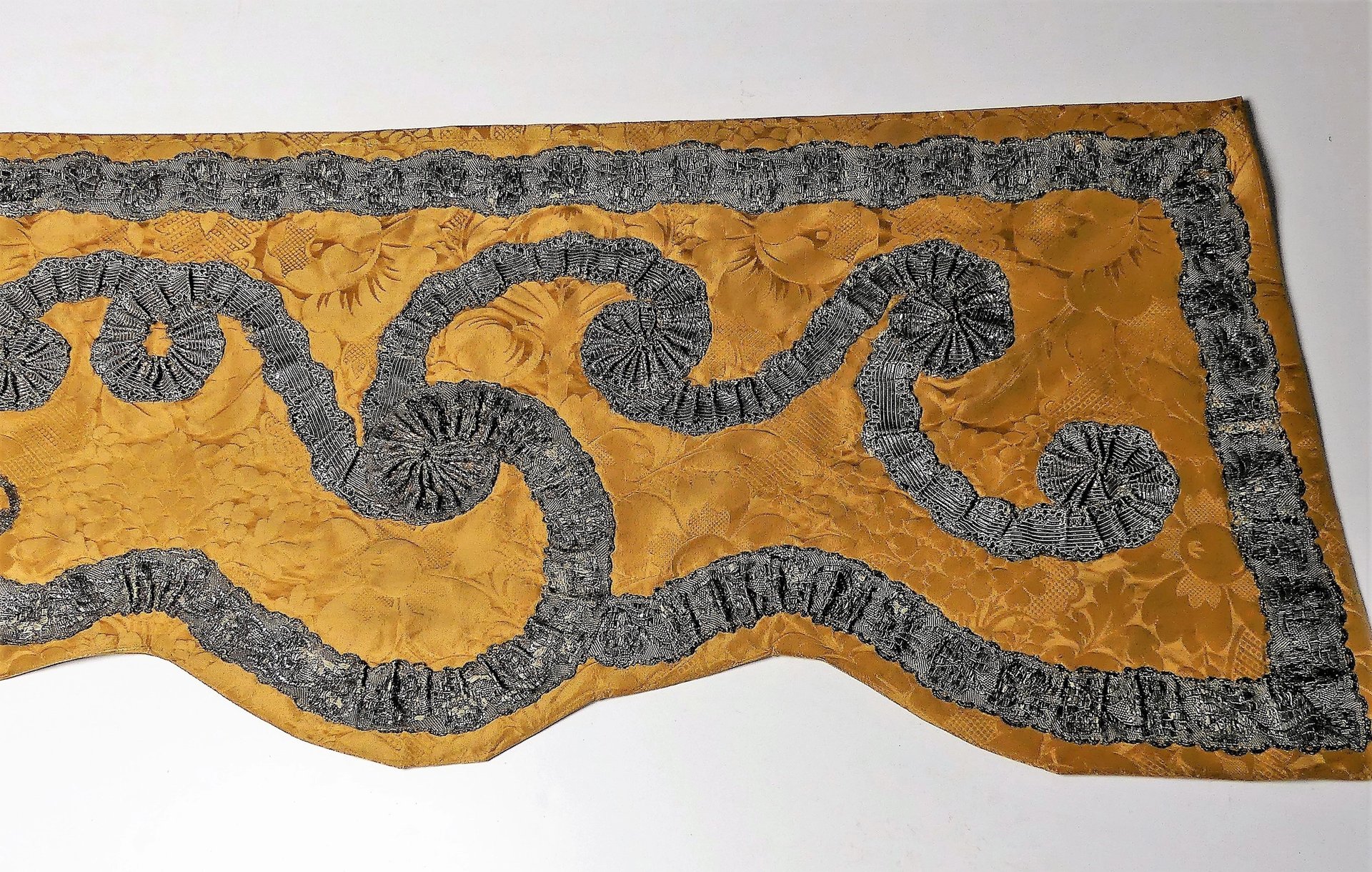 The storage conditions immediately after the war were far from ideal, Evers says. The yellow damask baldachin hangings are bleached, dirty, fragile and, in some places, torn. The silver fringe, which consists of thousands of individual strands, represents a particular restoration challenge because the strands are corroded and knotted, and some are broken.