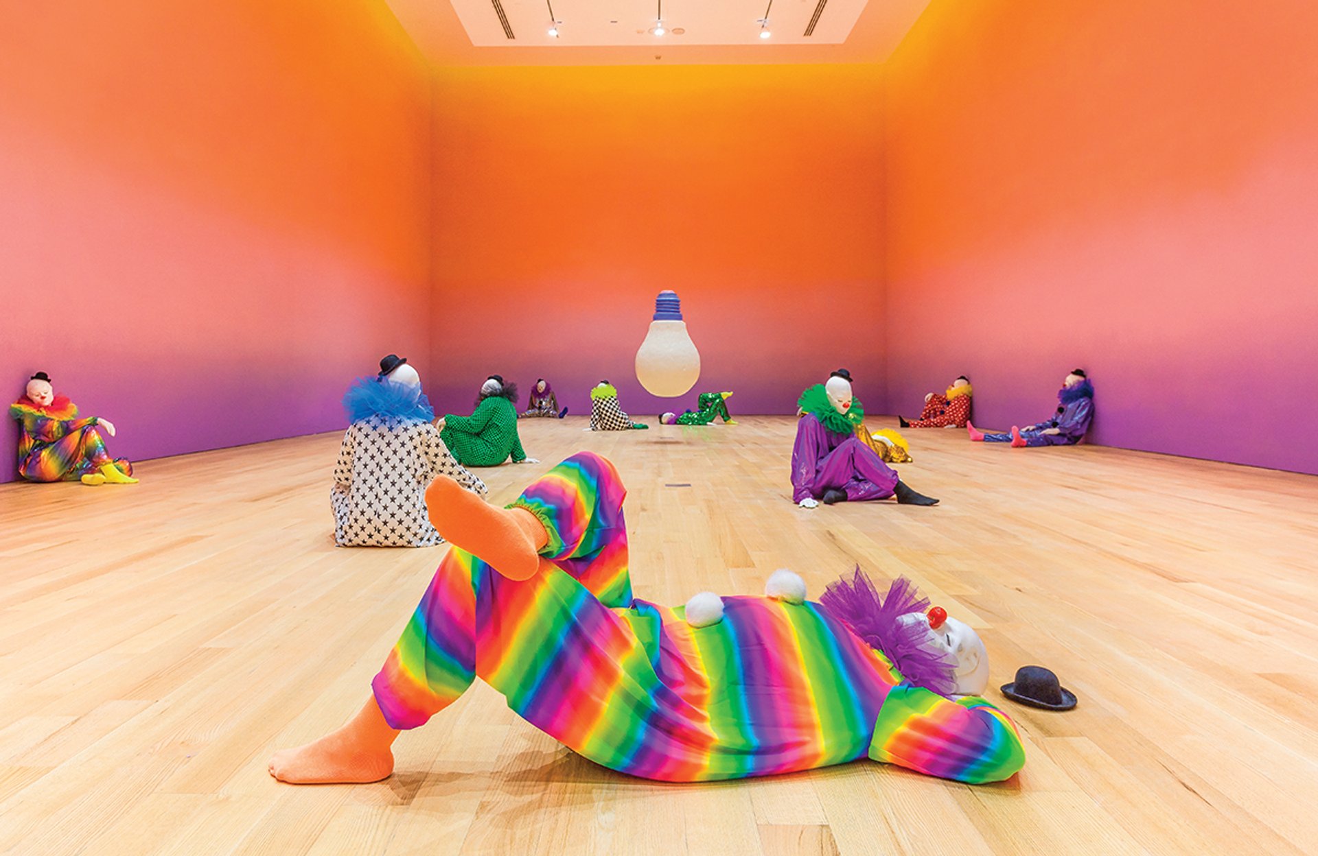 The Swiss-born, New York-based artist Ugo Rondinone is taking over the second floor with his exhibition Good Evening Beautiful Blue (until 19 February 2018), which includes an installation of 45 life-sized clown figures in various action poses, vocabulary of solitude (2014-16).