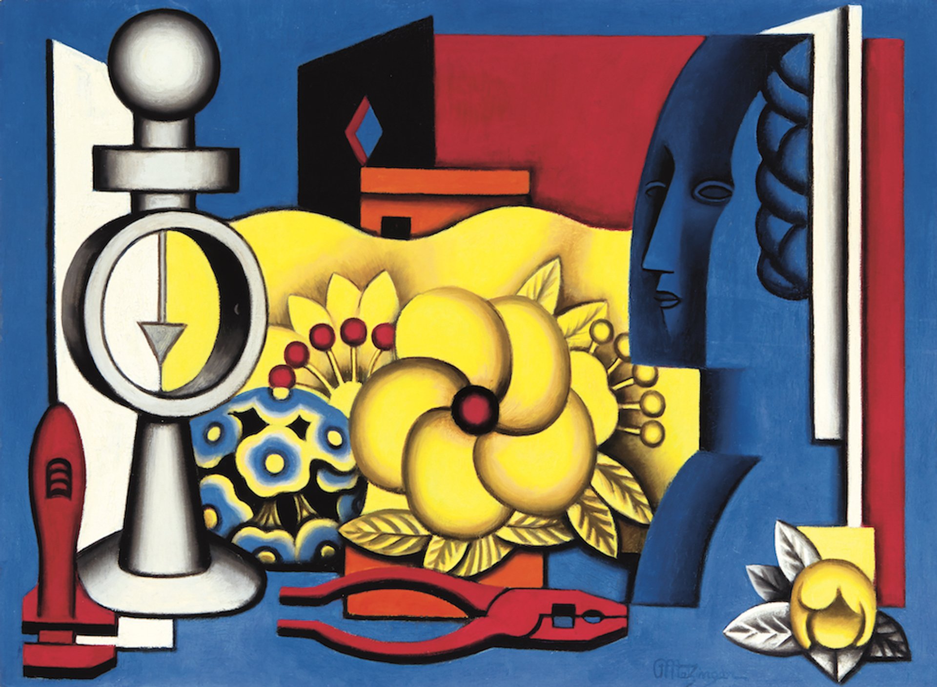 This existential still life, composed of industrial tools matched by flowers of a mechanistic nature and a bust of a woman staring coolly beyond the frame, alludes to the “machine” of society that fascinated many early 20th century artists. “Like his colleague Fernand Léger, Metzinger embraced an aesthetic based on machinery and industrial productions, both for their compelling forms and as metaphors for modern life”, says Elaine Banks Stainton, the director of the auction house’s paintings department. Although Metzinger’s works from the 1910s, when he was instrumental in the founding of Synthetic Cubist movement in Paris, are generally preferred by the market, this oil painting, Stainton says, is “a powerfully cohesive composition, and like Metzinger's best works, brilliantly coloured, as well as an unusually fine example of the artist’s ‘mechanical’ style, which he developed in the late 1920s.” The painting first belonged to Léonce Rosenberg, Metzinger’s dealer for many years and one of the earliest supporters of Cubism, whose Galerie L'Effort Moderne also represented Léger, Georges Braque, and Pablo Picasso, among others. The work, which retains its original gallery label, is being offered in good condition, with modest touches of restoration in peripheral areas of the canvas. Another still life from the same period featuring a similar blue bust, Composition à la tête bleue (1930), recently sold for €87,500 ($103,000) at Christie’s Paris.