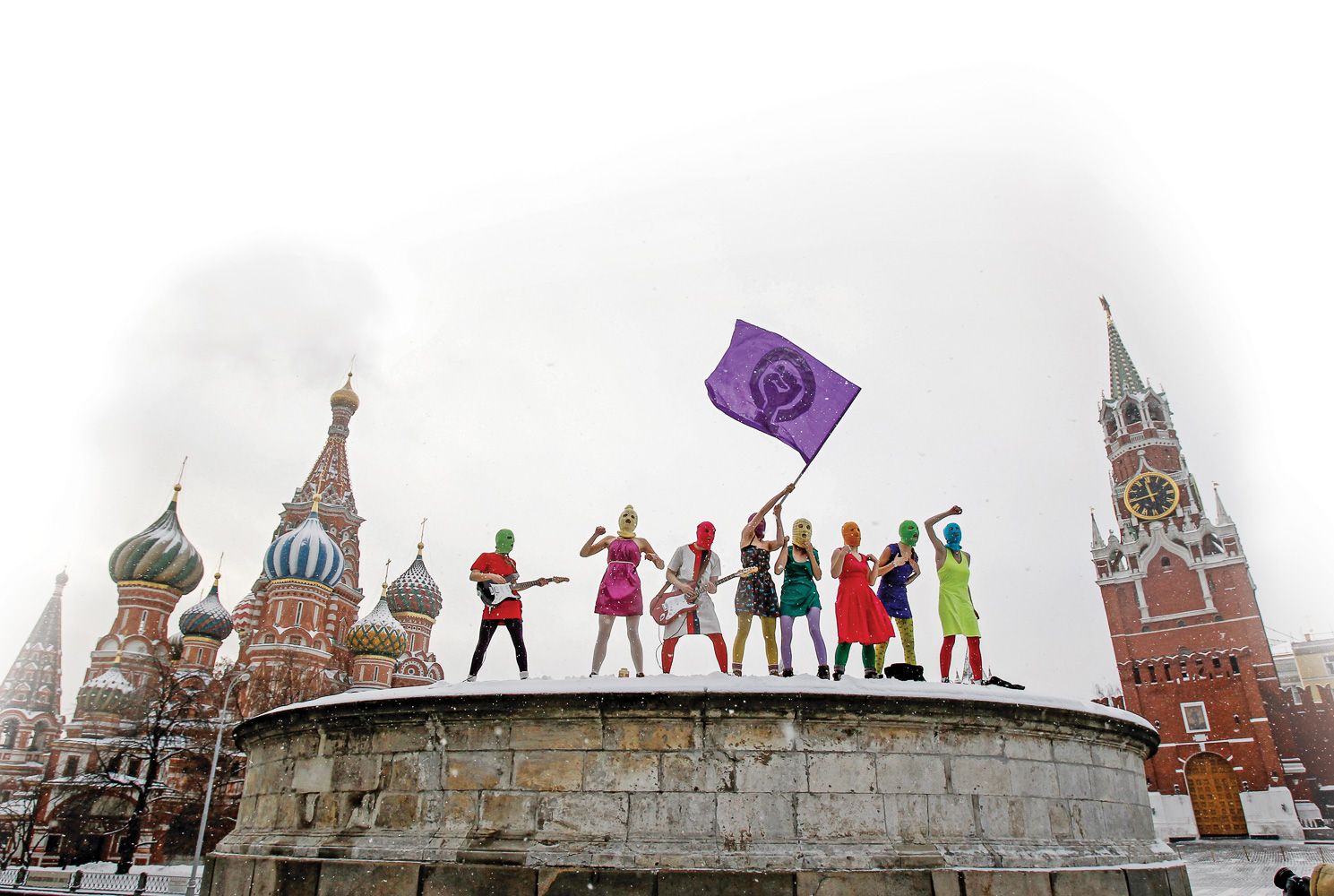 The punk band who became an emblem of Russian activism in 2012, when their performance in their customary balaclavas in Moscow’s Cathedral of Christ the Saviour, protesting the connections between Putin’s state and the Russian Orthodox Church, led to the arrests of three members and the imprisonment for “hooliganism motivated by religious hatred” of two of them. Pussy Riot have many more members and are linked to the performance art group Voina, who famously painted a penis on the tarmac of the rising and falling bridge opposite the Russian Security Service building.