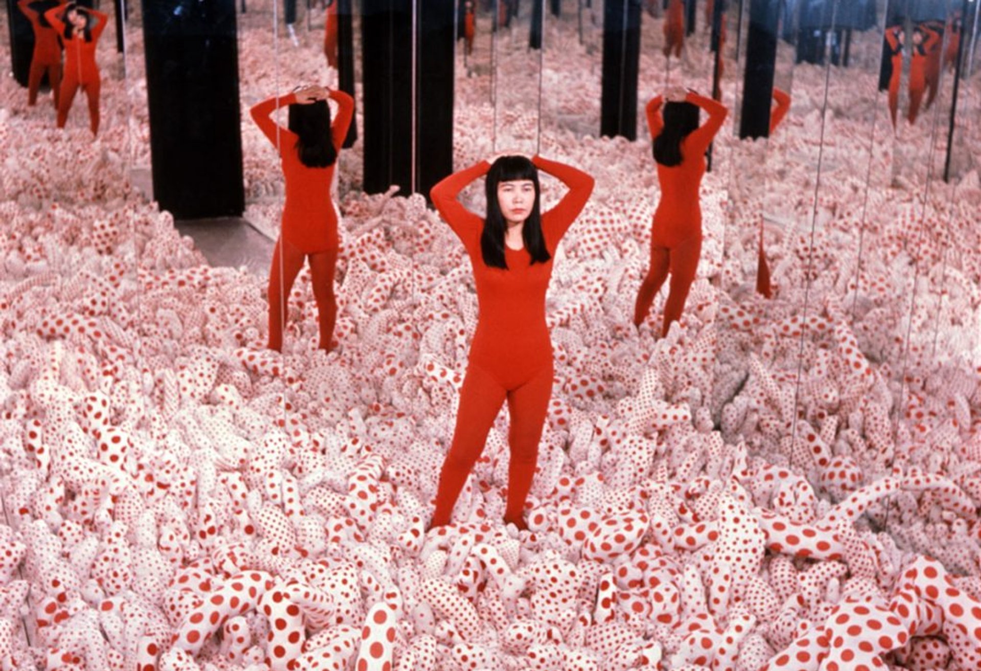 Yayoi Kusama inside her Infinity Mirror Room—Phalli’s Field (1965), at Castellane Gallery, New York Yayoi Kusama; Courtesy of Ota Fine Arts, Tokyo/Singapore; Victoria Miro, London; David Zwirner, New York