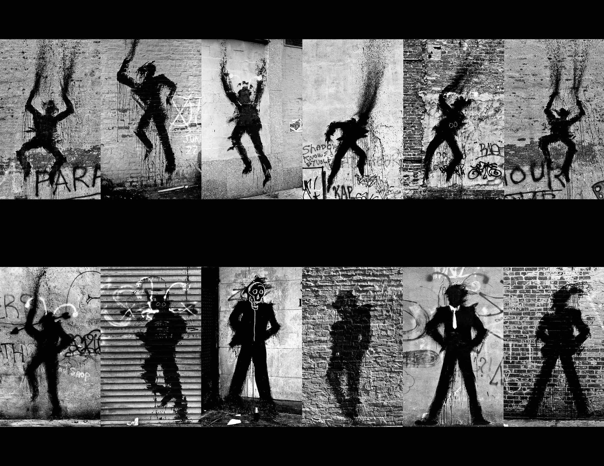 Night-time footage in the film shows Richard Hambleton splashing a Shadowman onto a wall in a minute Photo: Hank O’Neal. Courtesy of Film Movement, Storyville Films and Motto Pictures