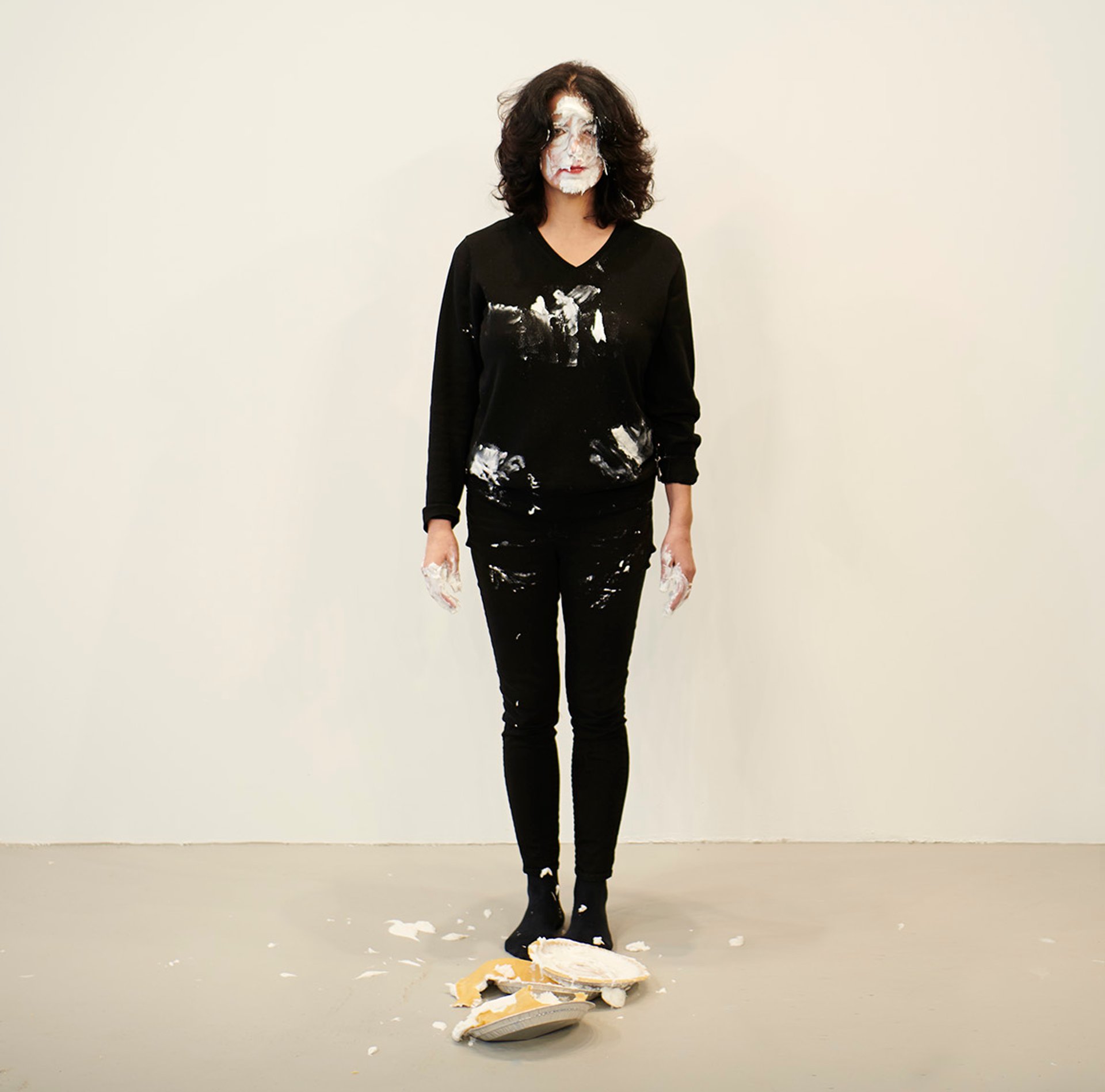 If you’ve never seen someone be hit with a pie in person, it’s a fraught experience for everyone in the room. This is true even if you know it’s going to happen, even if you yourself are the pie-thrower and even if you have permission from the pie-ee. All of which applied when I recently took part in a rehearsal for a performance piece by the artist Jennifer Rubell starting today (8 February).