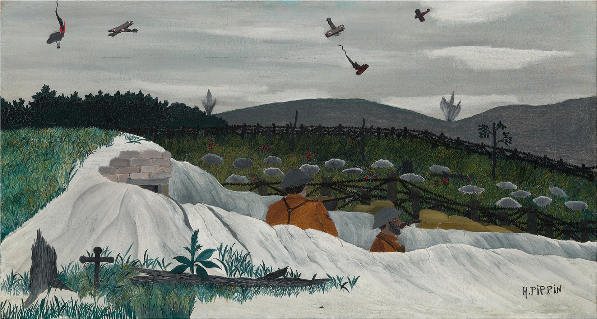 Horace Pippin, Dog Fight over the Trenches (1935-1939) Hirshhorn Museum and Sculpture Garden, Smithsonian Institution, Washington, Gift of Joseph H. Hirshhorn, 1966