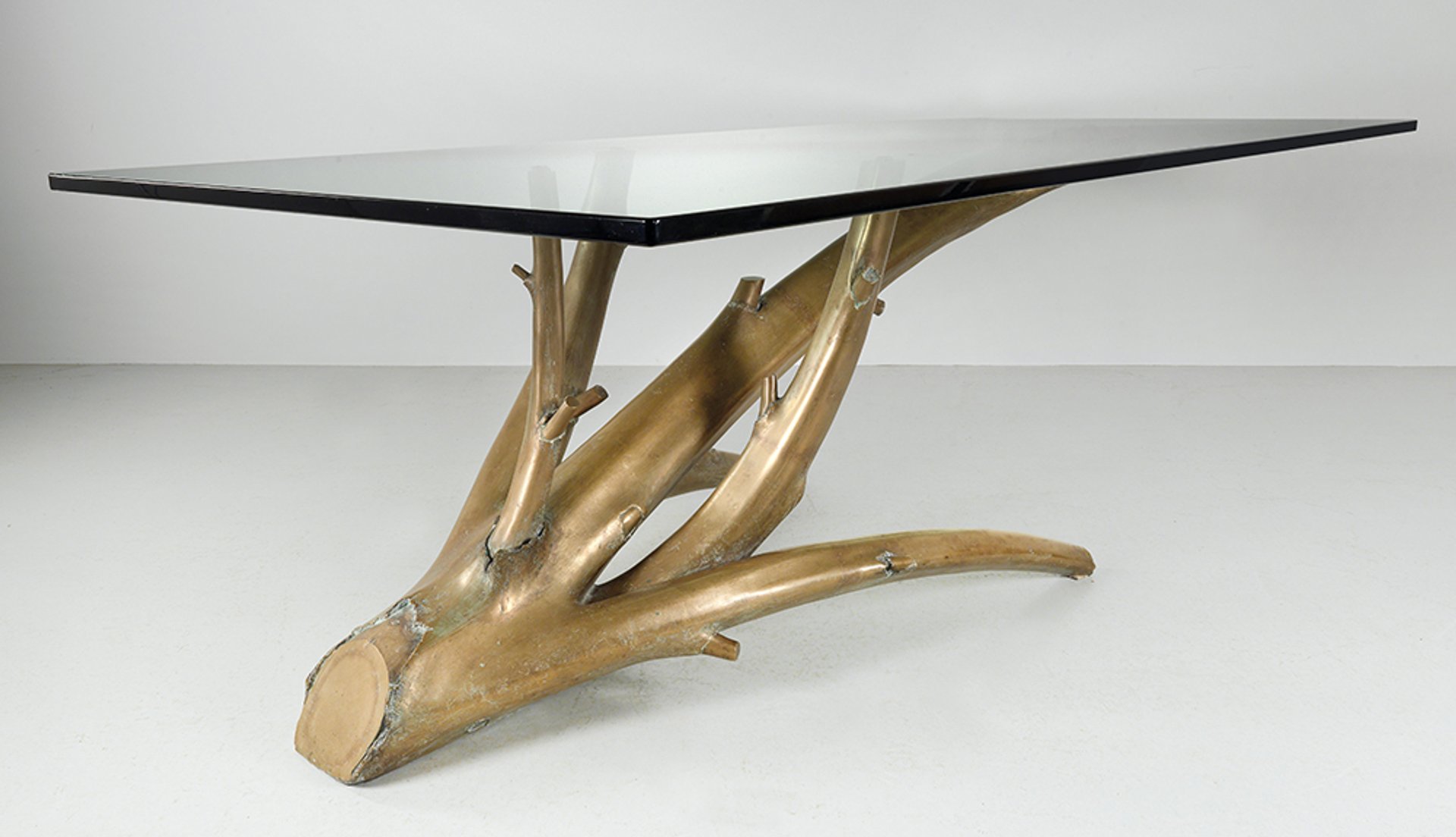 Giacomo Manzù, a pseudonym of the self-taught Italian sculptor Giacomo Manzoni, designed this table for his home in San Vigilio. The unique piece is the first sculpture from Manzù’s home to surface at auction and has been consigned by the artist’s daughter-in-law after spending the last two decades on display at the Galleria d'Arte Moderna e Contemporanea of Bergamo, where Manzù was born. The table, manufactured by the MAF foundry of Milan, is made of Bohemian crystal glass and supported by a branch base cast in an alloy of bronze, silver and gold, which creates the glimmering golden surface. Branches and botanical subjects were motifs Manzù used often, as seen in works like the Porta della Morte (1952-1964) he made for Saint Peter’s Basilica in Rome. The artist used the same custom alloy to create his best-known sculptures, including some in his Cardinal series, which the artist began in the late 1930s and continued throughout his career. A set of three bronze Cardinal works set the artist’s auction record in 2001, making £432,500 at Sotheby’s London, however, there are “few examples of furniture to compare this piece to, and no auction examples”, says the auction house’s design expert, Gerti Draxler. She adds, “we believe it will achieve a good price since it’s so unique and totally fresh to the market”.