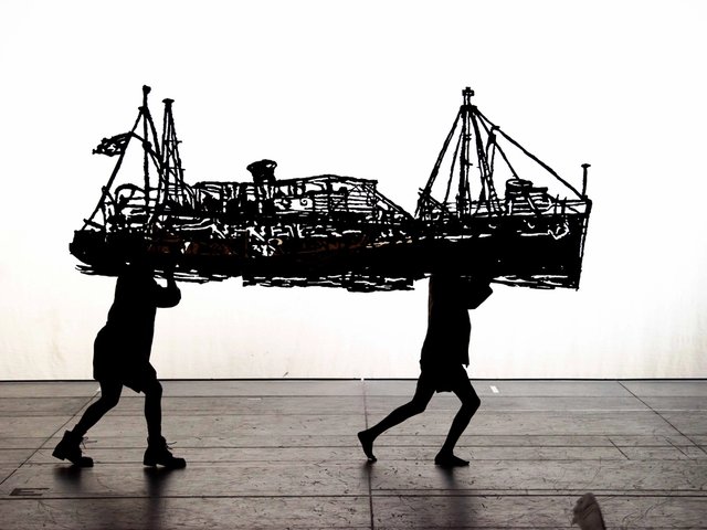 Other former collaborators joined in too: Canadian musician Kate Fenner stepped up to perform a haunting live rendition of Woody Guthrie’s Path of Plenty as part of Jonas revisiting the 2005 The Shape, the scent, the Feel of things. Another memorable moment was when Lila, one of the child-performers who traced the passage of bees in They Come to Us Without a Word, came up from the audience and sat to one side for a chunk of the second half, meticulously ravelling and unraveling a ball of wool. As the evening unfolded in all its different manifestations, it felt less like a lecture demonstration and more like a unique family reunion, presided over by an exceptional matriarch with ringside support from her canine sidekick.