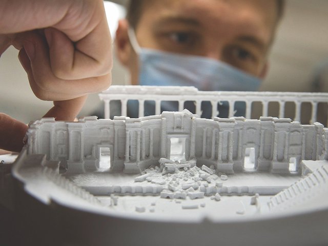 The competition coincided with Russian museum exhibitions devoted to Palmyra. An exhibition at the Schusev State Museum of Architecture (until 23 March) displays 18th and 19th century engravings of the ancient city from the museum’s collection as well as loans from the State Hermitage Museum. It also includes photographs and drone footage taken in 2016 by a team of archaeologists and antiquities experts from the Hermitage and the Institute of the History Material Culture of the Russian Academy of Sciences. The drone documented the destruction and pillaging of Palmyra’s monuments, including the Temple of Bel and funerary towers..