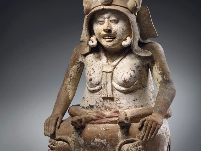 Other highlights include a rare Mezcala crouching figure carrying a baby on its back (lot 85, est €10,000-€15,000), meticulously carved from dark green, polished stone, and a striking Aztec divinity figure from green and grey blue polished jadeite (lot 53, est €30,000-€50,000).