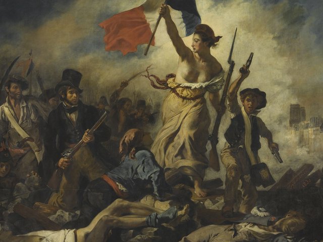 Delacroix burst on to the art world with a series of succès de scandale at the Salons: in 1824, he showed The Massacre at Chios, which was innovative in its depiction of a contemporary rather than historical event, with allusions to the repressive Restoration monarchy; in 1827, The Death of Sardanapalus, which was a shocking celebration of death and eros; and in 1831, Liberty Leading the People, depicting a contemporary demonstration against the Bourbon dynasty.