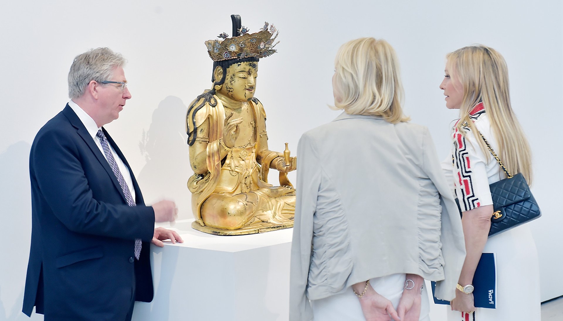 Lacma curator Stephen Little, promoting the 17th-century Korean Bodhisattva, ended his pitch by promising collectors supporting the work that they “will all be reborn” Photo: Stefanie Keenan/GettyImages for LACMA
