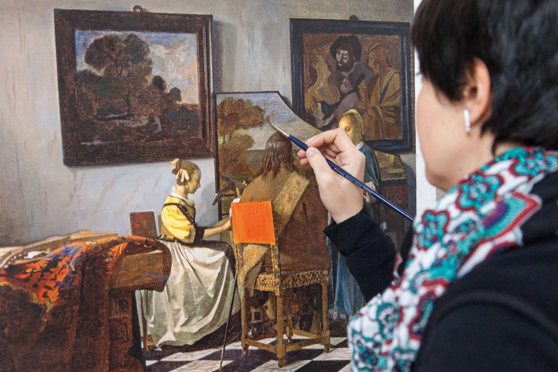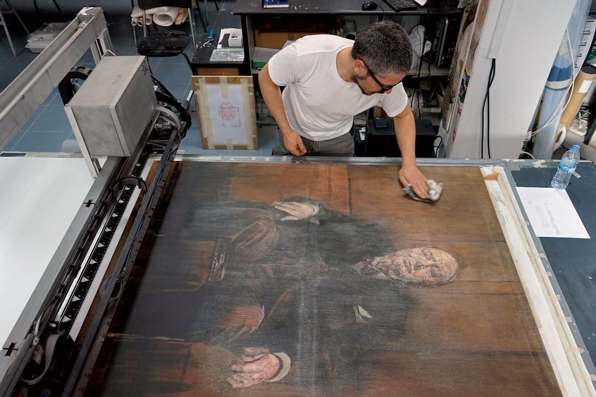 Two contemporary artists’ versions of the painting were used in the re-creation Factum Arte