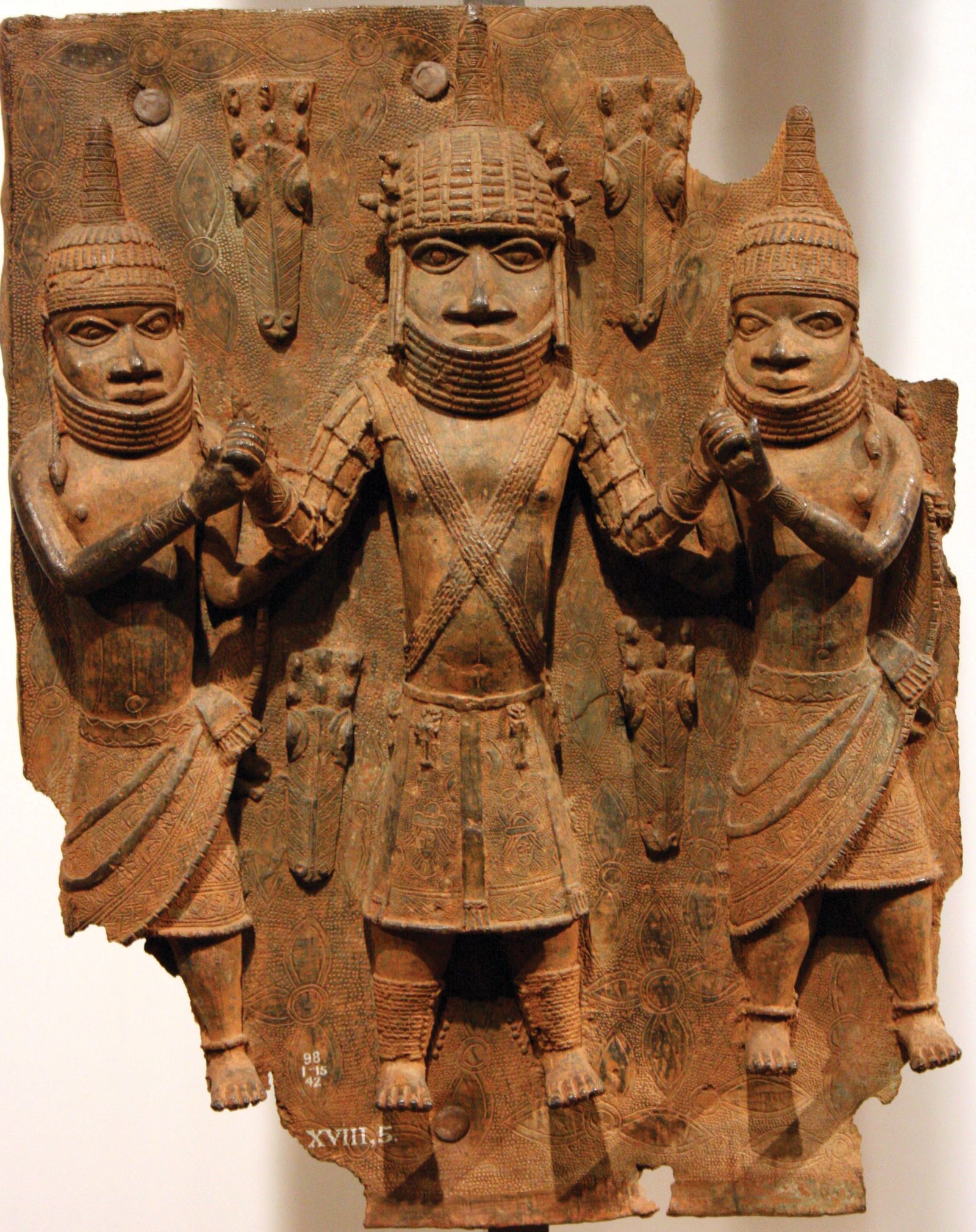 The British Museum holds around 700 Benin objects, the greatest of which are a brass head of a queen mother and an ivory pendant mask (both 16th century). The museum’s Sainsbury African Galleries display just over 100 Benin items, half of them brass plaques depicting court scenes.
