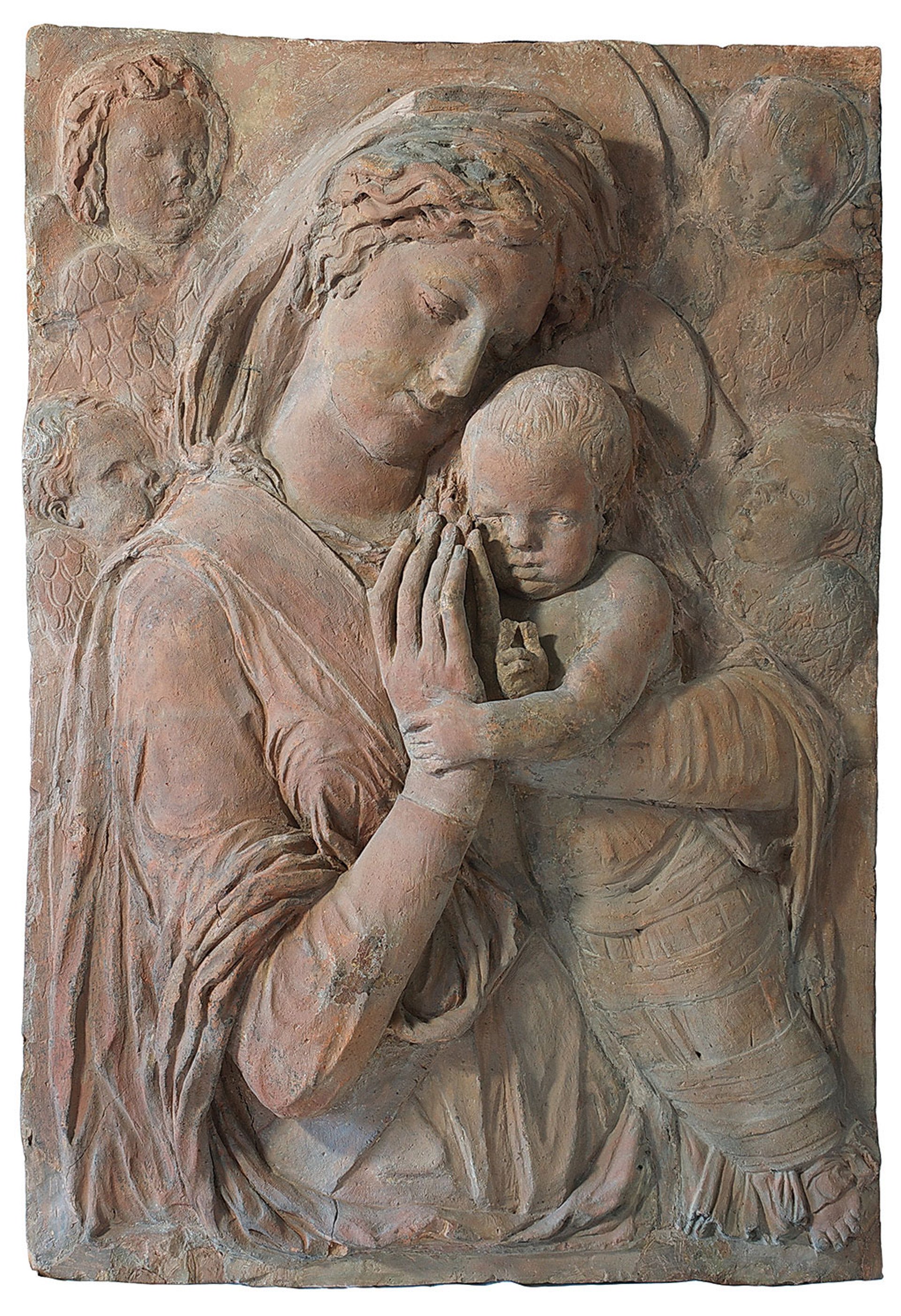 In the workshop of the Bode Museum in Berlin, Paul Hofmann, the head of restoration, points to a shiny patch on the arm of the Virgin from Donatello’s terracotta Madonna with Cherubim (around 1440). “That’s all that’s left of the paint,” he says.