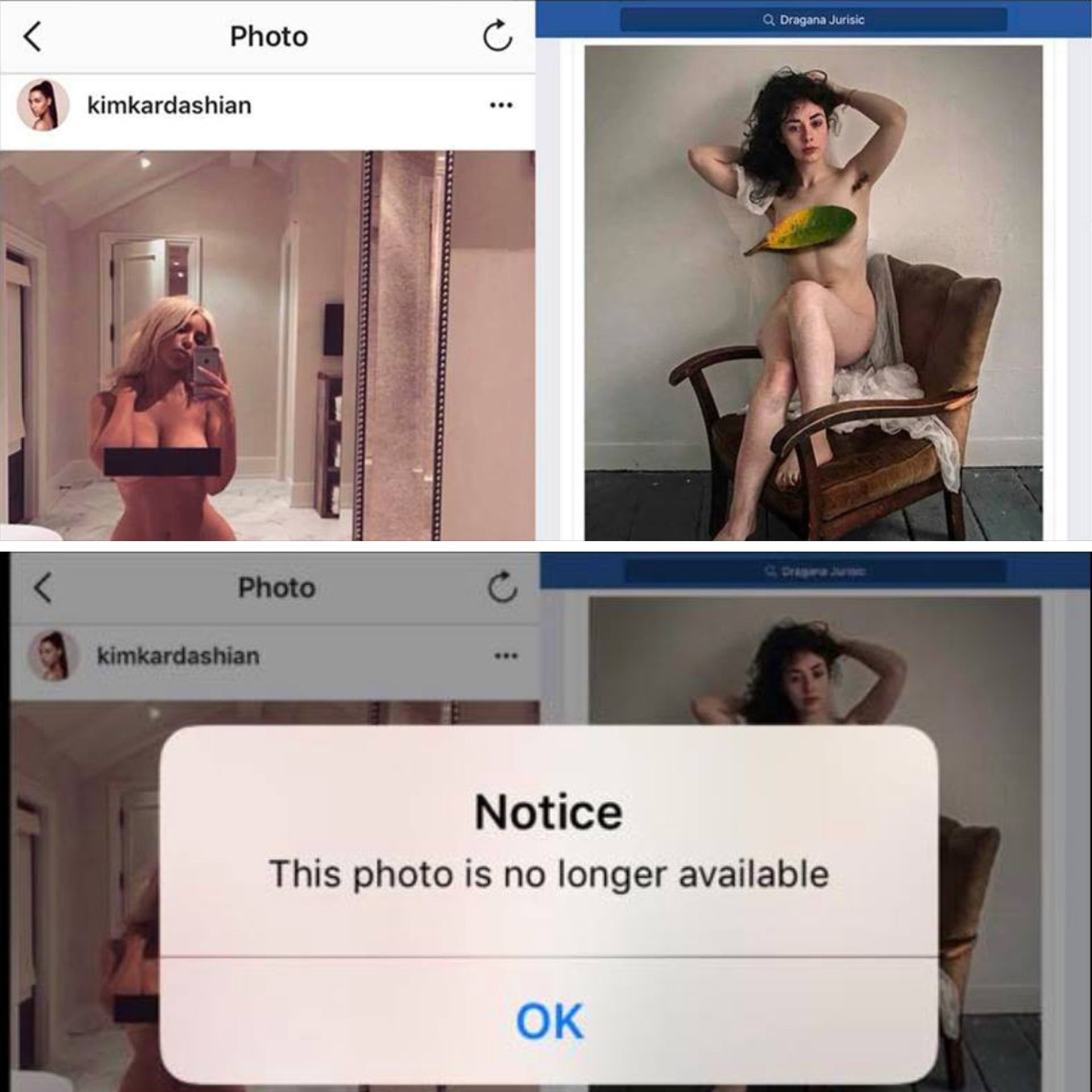 A number of Jurisic's peers have pointed out on social media that the work in questions is no more contentious than a nude image shared by the celebrity Kim Kardashian West, who has one of the largest followings on the platform.