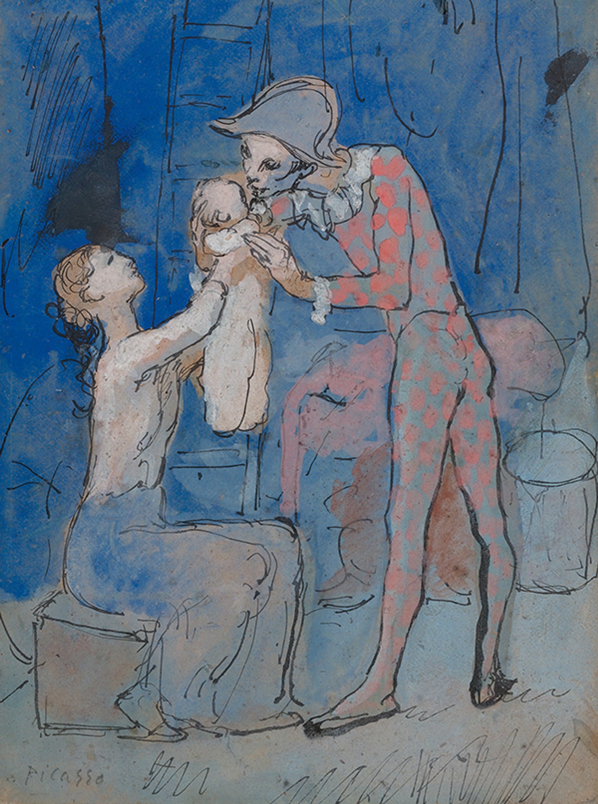 Picasso's Famille d'Arlequin (1905), a rare Rose Period gouache, made $11.5m Courtesy of Sotheby's