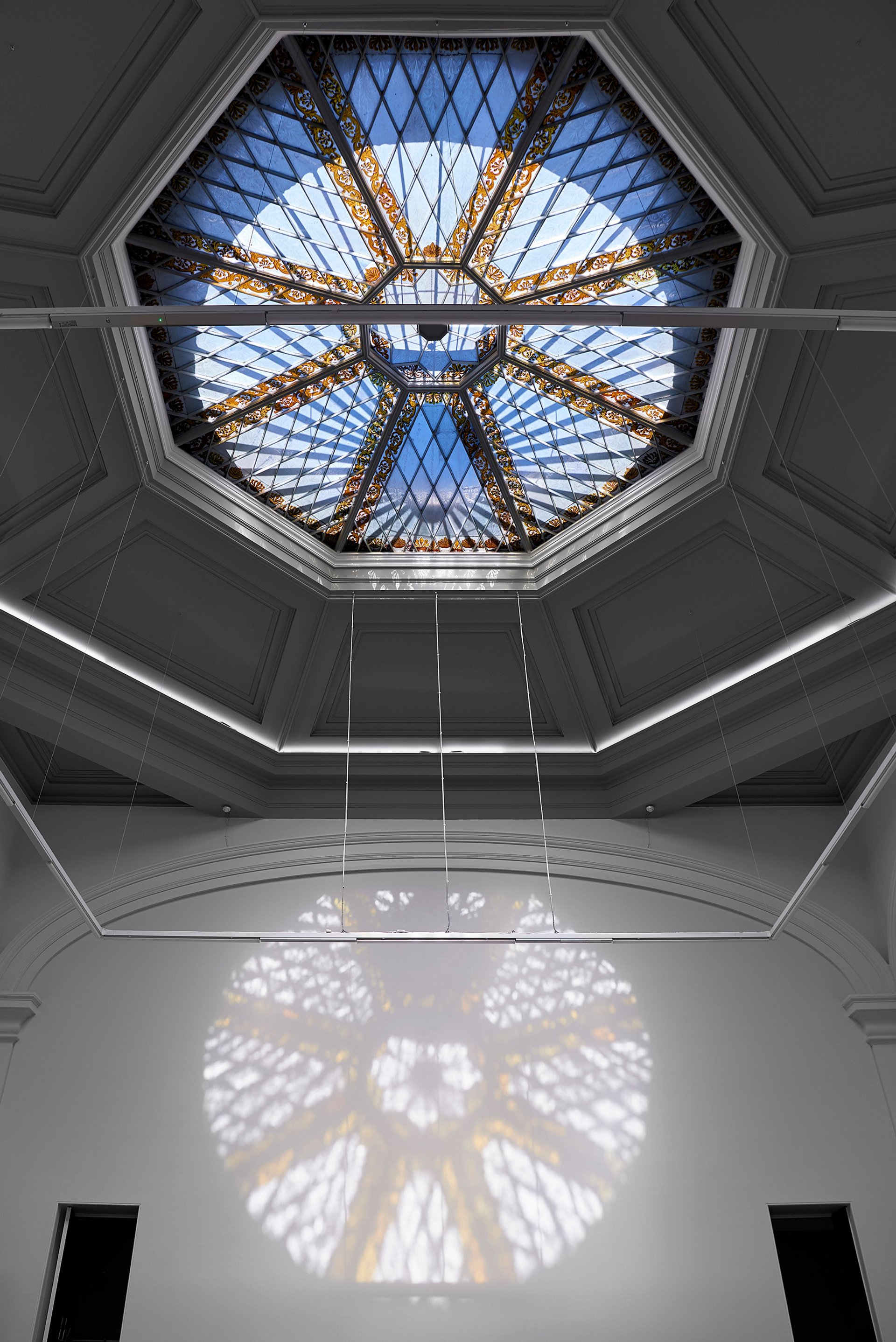 The greatest revelation was discovering that the cupola acts as a giant sundial. “When the sun shines through the dome there is a trace, or a projection, of coloured, dappled light on the walls. This trace dances and moves around as the sun turns around the building. Even more staggering, though, is that at midday, the sun pattern is centred, exactly on the middle of one wall,” Florence Ingleby says.