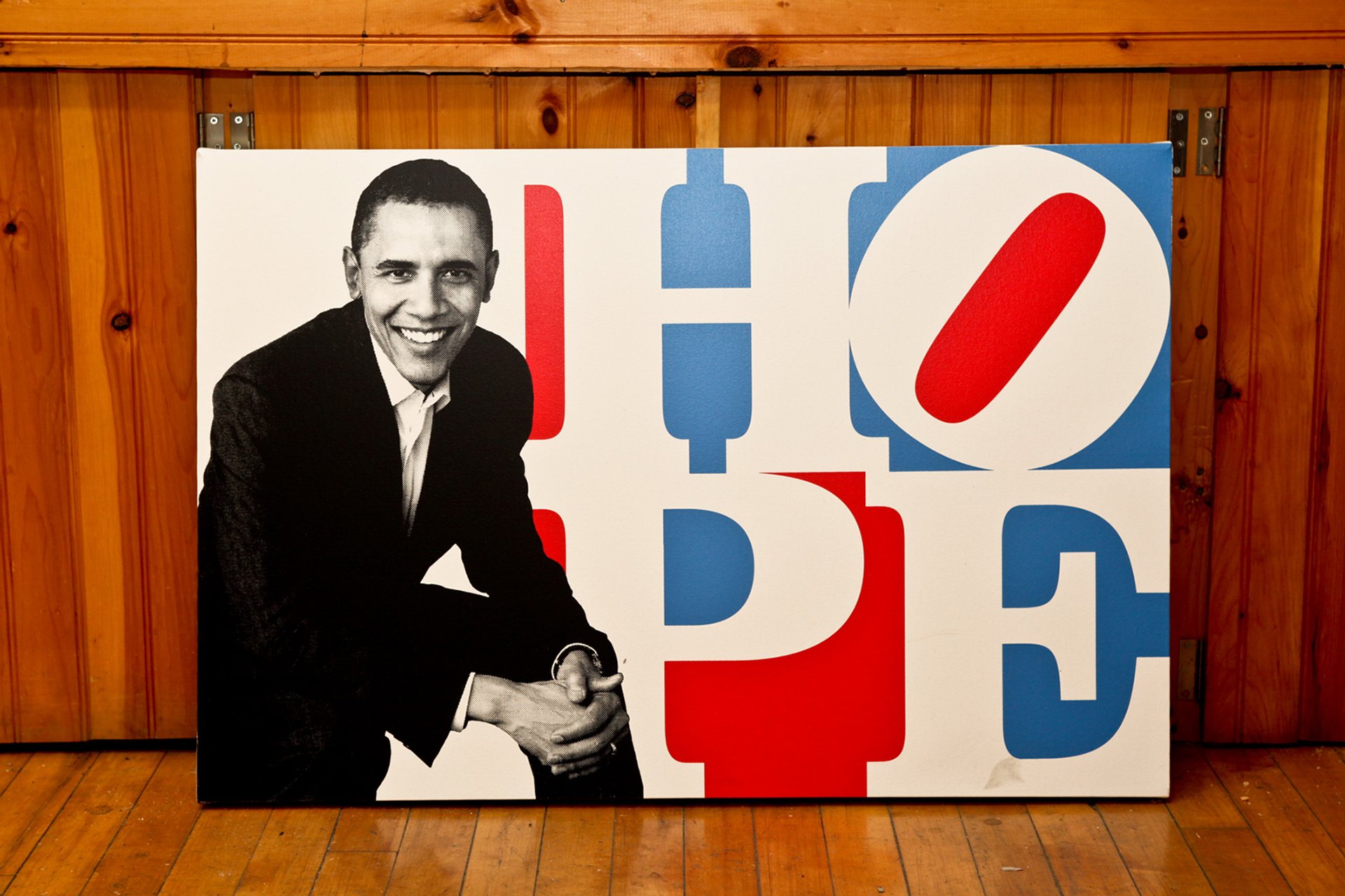 Robert Indiana created the work HOPE for Barack Obama's election campaign Photo: JOEL GREENBERG