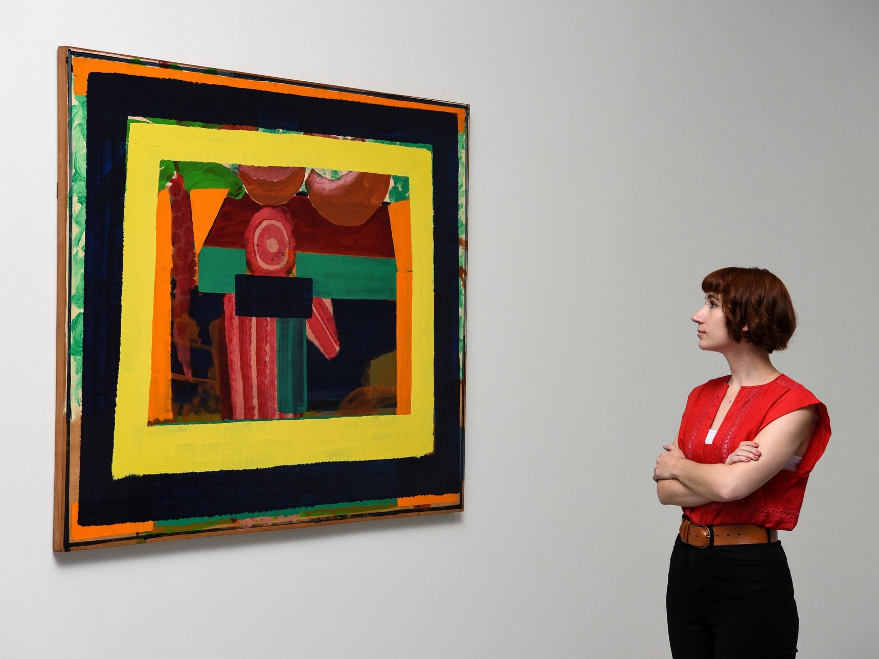 Antony Peattie, the music writer who was Hodgkin’s partner in the final four decades of his life, says that Hodgkin “had got into the habit of spending winter in India, mostly in Mumbai/Bombay”. They took an apartment there, converting a second bedroom into a studio. “There was something about India and the circumstance that allowed Howard to work,” Peattie says. “Partly it was that the difficulty of being there meant that there wasn’t much else that you could do.” Hodgkin used a wheelchair towards the end of his life, a tricky proposition amid the traffic, bustling streets and banyan trees in Mumbai, “so we scarcely ever went out except by taxi. So Howard was in the apartment looking at the view, and that included the Indian Ocean on one side and Gothic Bombay on the other, and if you woke very early there was dawn. And somehow there was the sunset, too. So the apartment and the life there suited work. And that became his absolute priority; he just wanted to work.”