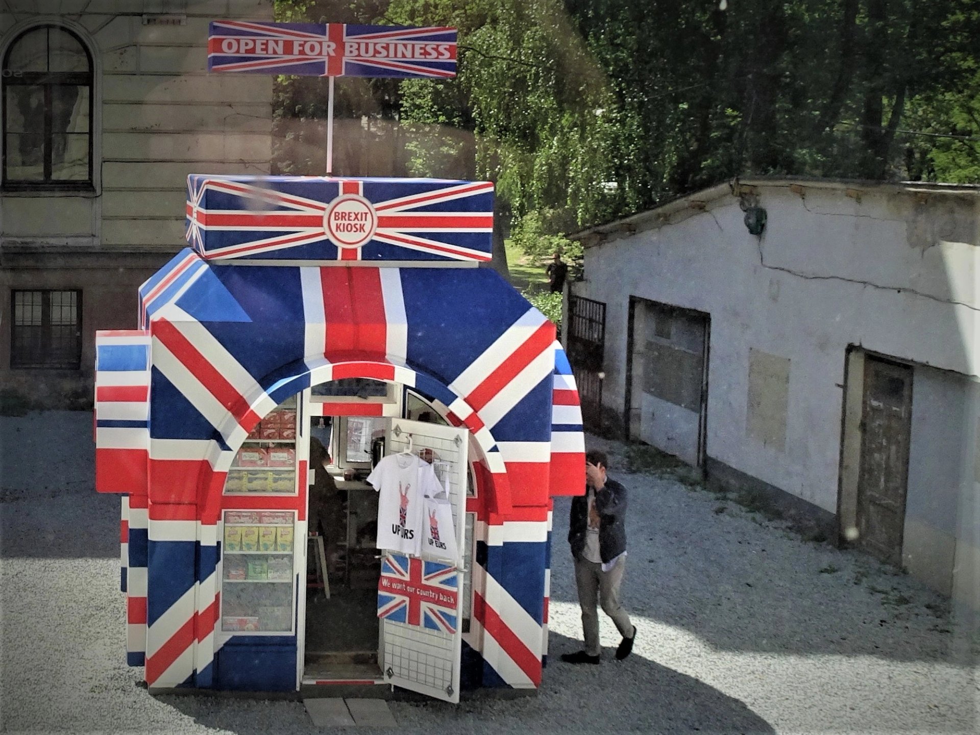 Michael Landy’s ho-ho Brexit kiosk, Open for Business (2018), lurks in the courtyard, while the surrounding riverside gardens host James Beckett’s smoking Palace Ruin (2016).