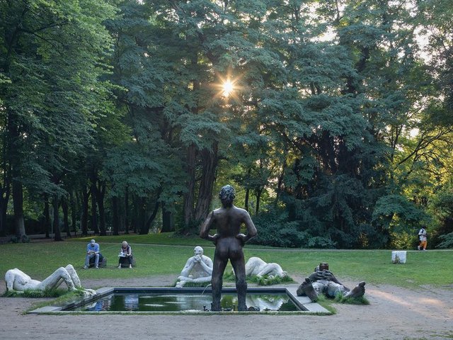 Invented by the French physicist Léon Foucault in 1851, the pendulum convinced the Catholic church of the Earth’s rotation, something its leaders had previously denied. Richter’s work comprises a 48kg brass ball suspended on a 29m-long cable from the dome of the early Baroque Dominican Church. A magnet created by the physics department of Münster University keeps the ball moving constantly over a circular space with a stone surface, where the church altar stood until it was removed to make way for the pendulum.