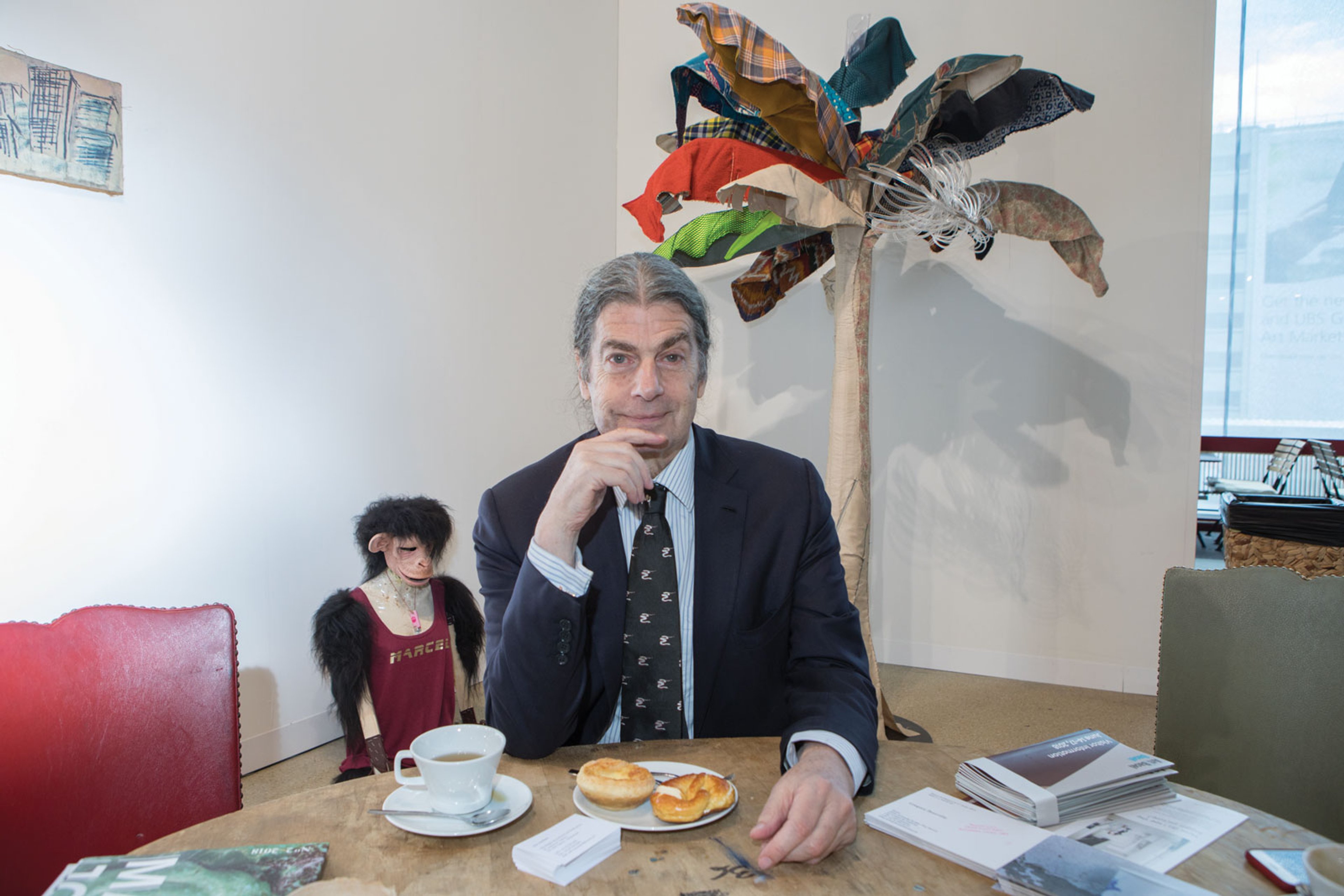 Topping the list of Bronson's favourite works is John Armleder’s “work” Ecart, an artist-run project initiated in the late 1960s that has had a presence at Art Basel since the mid-1970s as a kind of exercise in generosity. “John presides at this table and greets people all day long, everybody knows him,” Bronson says. “If he disappeared, people would be beside themselves, Art Basel would be over. He’s the defining presence of Art Basel, an icon.” The familiarity, however, is not necessarily mutual. “People say ‘hi’. I often don’t recognise them, but I pretend I do!” Armleder admits. Ecart sells work by other artists without taking commission, and these days, the project only exists during the fair. For decades, Armleder has fitted out his stand with the same Jean Fautrier-designed furniture, which came from the ballroom of the hotel his parents ran in Geneva. What has changed at the fair over the years? “I’m getting older,” Armleder says, to which Bronson quips: “I’m getting younger.” John Armleder at Ecart © David Owens