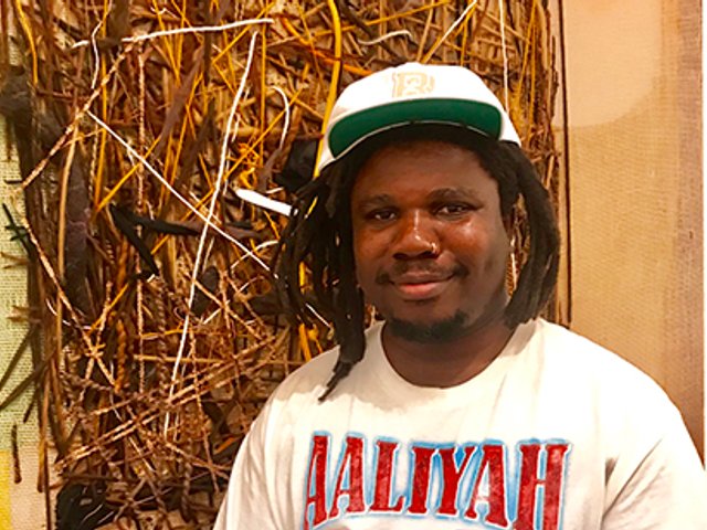 The works in question vary in size: there is a small monochrome brown panel with the title Monster (2010) (which is apparently built up from so many layers of cannabis that it cost infinitely more to make than to sell). But there are also larger canvasses, more than a metre across, that are more sparing in their use of ganja, such as the abstract striped This is Your Captain Speaking (2018) or Retreat (2016), which depicts a cabin set in woods.