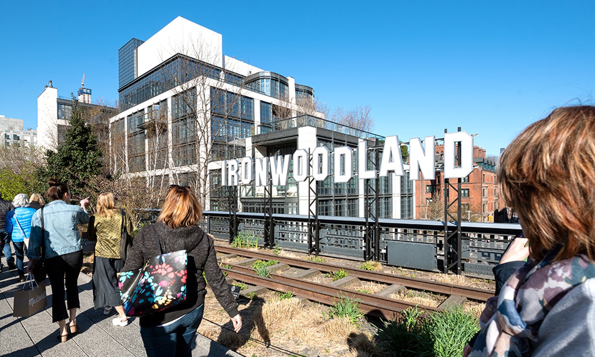 Nine artists from South America, North America, Europe and Central America have taken over the High Line, the Meatpacking District’s popular elevated park, drawing the casual strollers’ attention to serious social and political issues, ranging from last year’s forest fires in the northwestern coast of the US to imperialism to the prison industrial complex to women’s rights. The show includes a few text-based works, including two in neon—Pope.L’s green and red RiGT TURN for REPARATIONS and Andrea Bower’s orange and green Somos 11 Miliones/We Are 11 Million—and Sable Elyse Smith’s block-lettered C.R.E.A.M., named after a Wu Tang Clan song and referencing southern California’s state prison while also recalling the famous Hollywood sign. As the ancient Greek title prompts us to imagine, these works aim to turn the town square-like space of the High Line into a site for vigorous political, as well as artistic, debates.