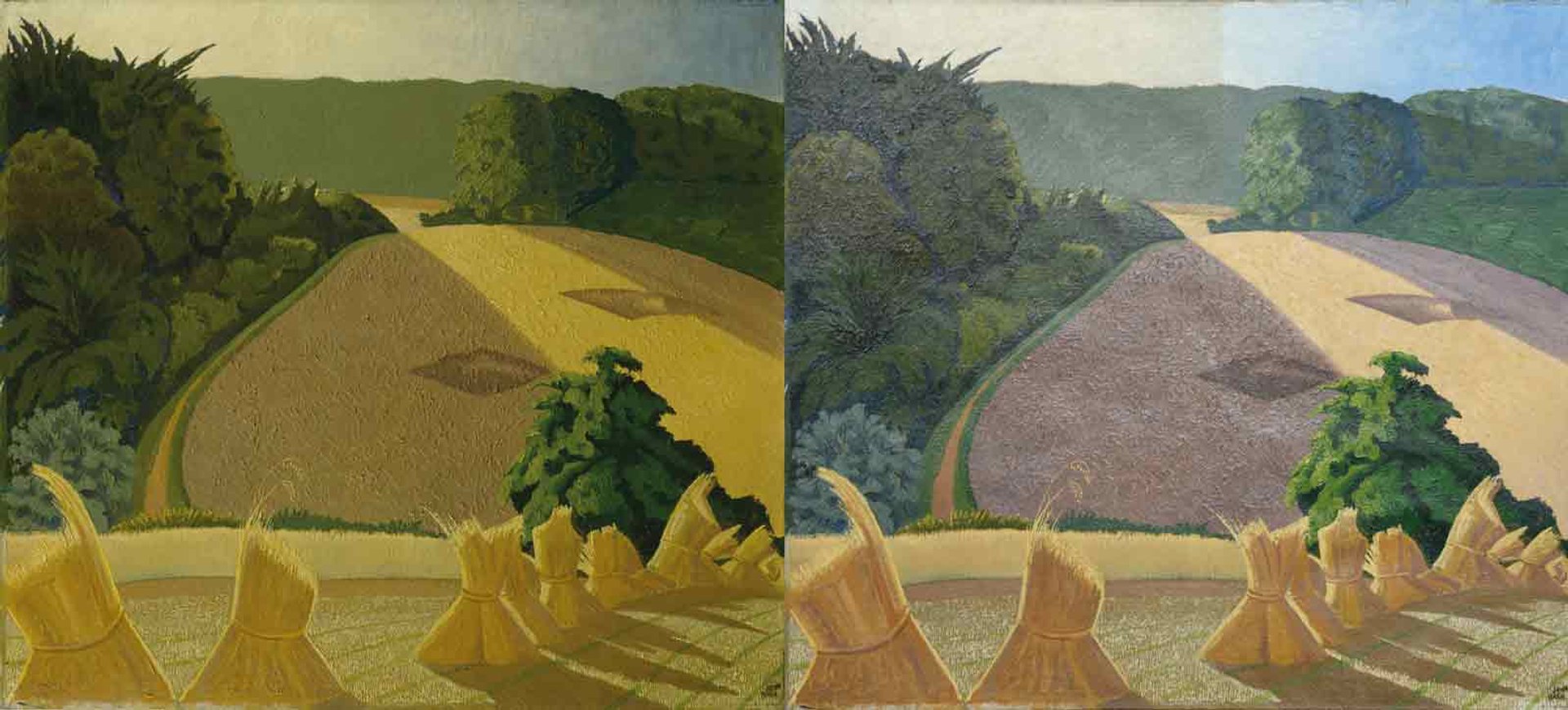 John Nash's The Cornfield (1918) before (left) and after treatment Tate
