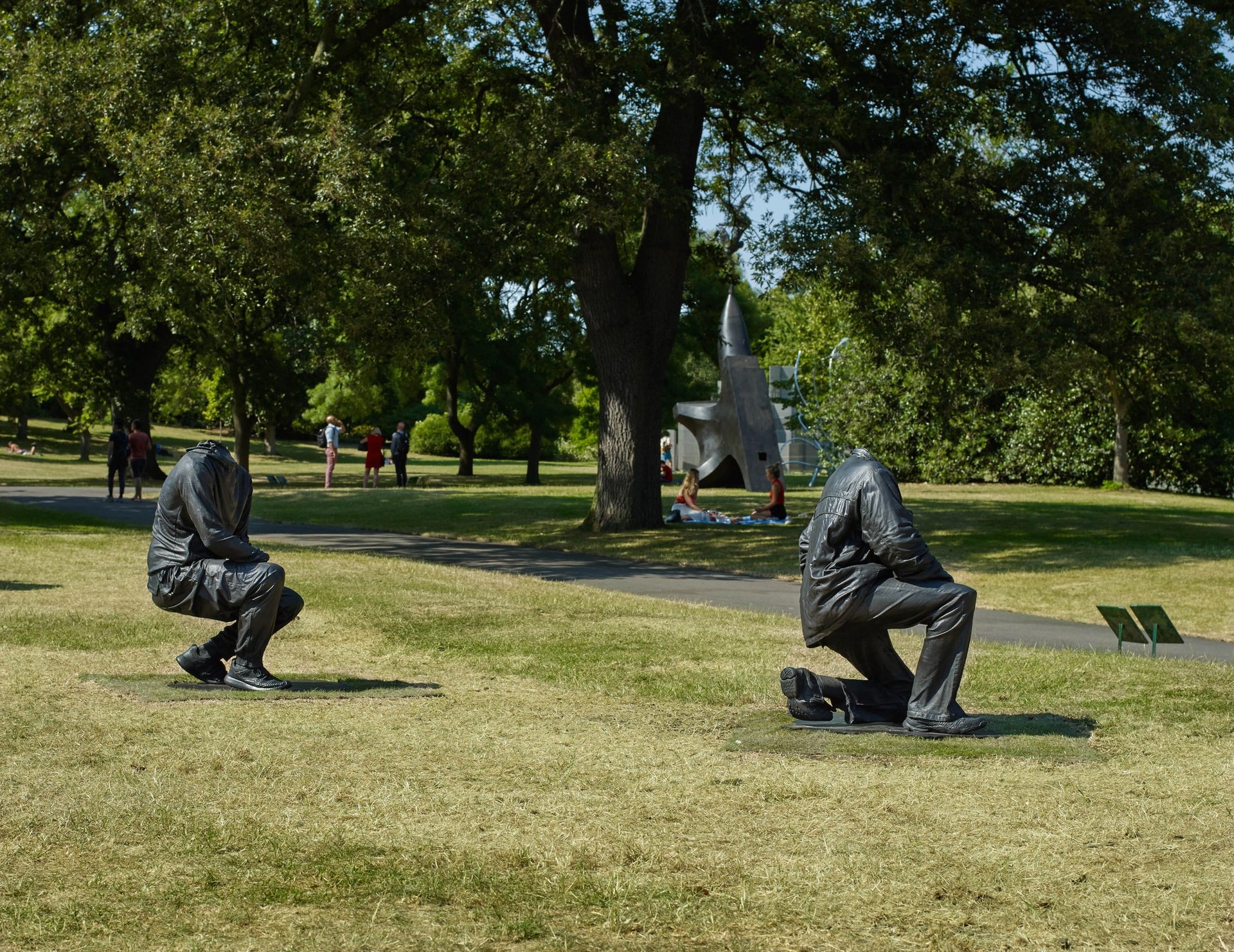 The South African artist Haroon Gunn-Salie’s sculpture on show in Regent’s Park in London, which commemorates the Marikana massacre of 2012, gains extra resonance today on the sixth anniversary of the tragedy. The entire work, on show as part of Frieze Sculpture (until 7 October), was installed earlier this week: 17 headless, kneeling bronze-cast figures make up the piece entitled Senzenina (2018). “There was a production delay which meant the work was only fully installed yesterday,” says a spokeswoman for Johannesburg-based Goodman Gallery which represents Gunn-Salie.