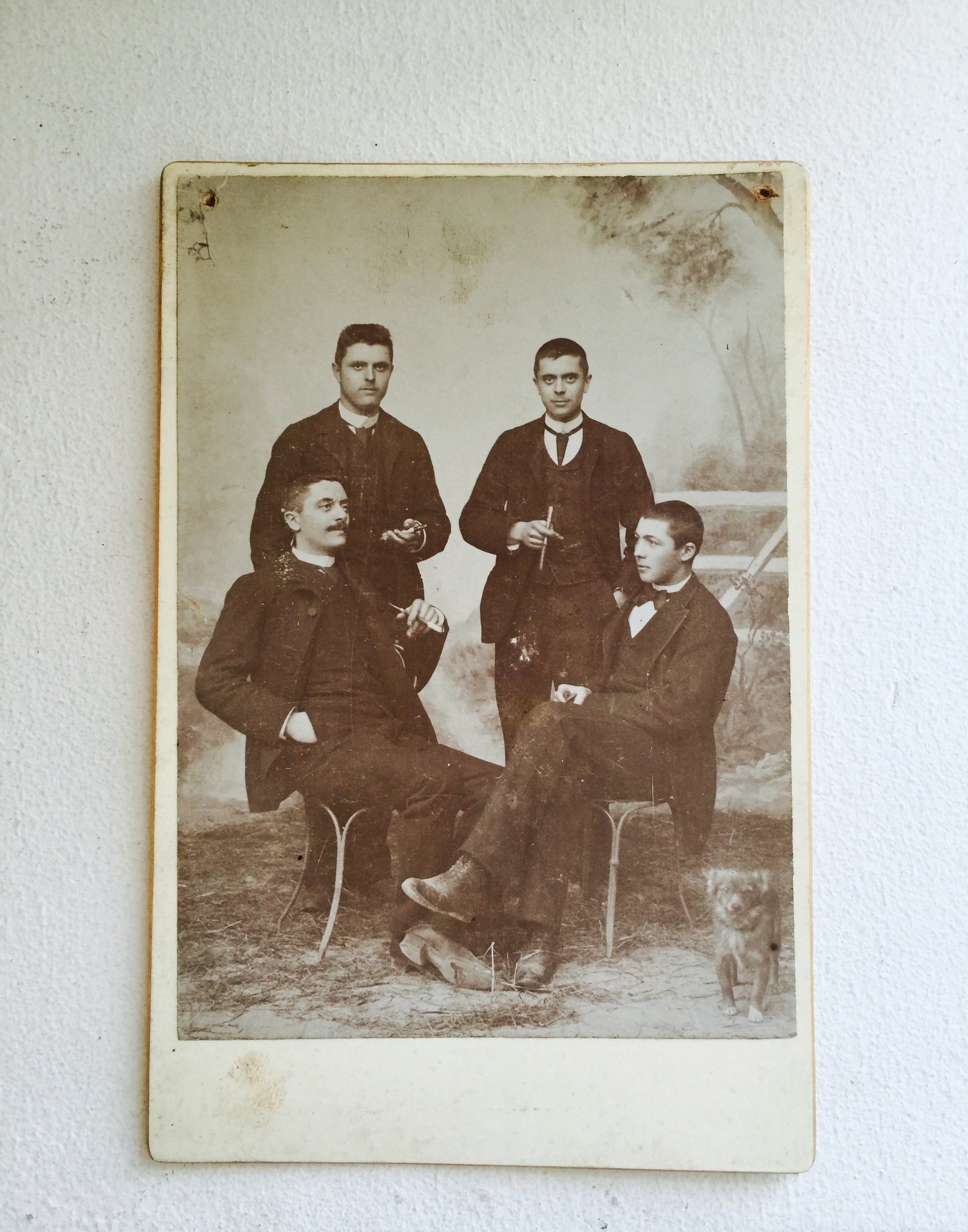 François Poulet (seated lower right)—who recalled that Barral was the sitter—with friends (1888-90), photograph by Duval Courtesy of Musée Estrine, Saint-Rémy-de-Provence
